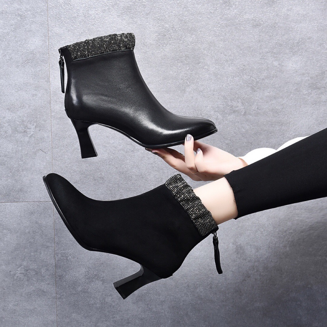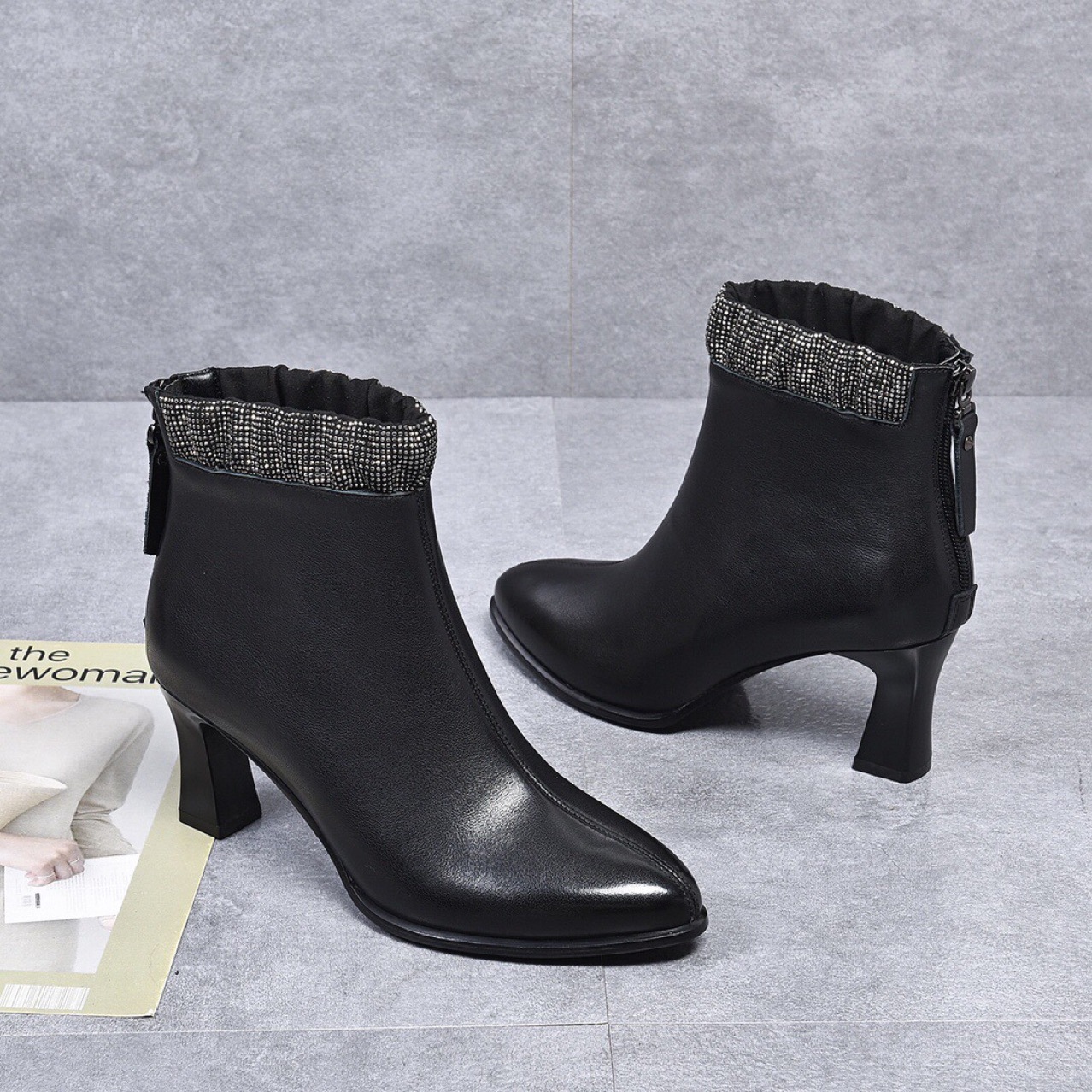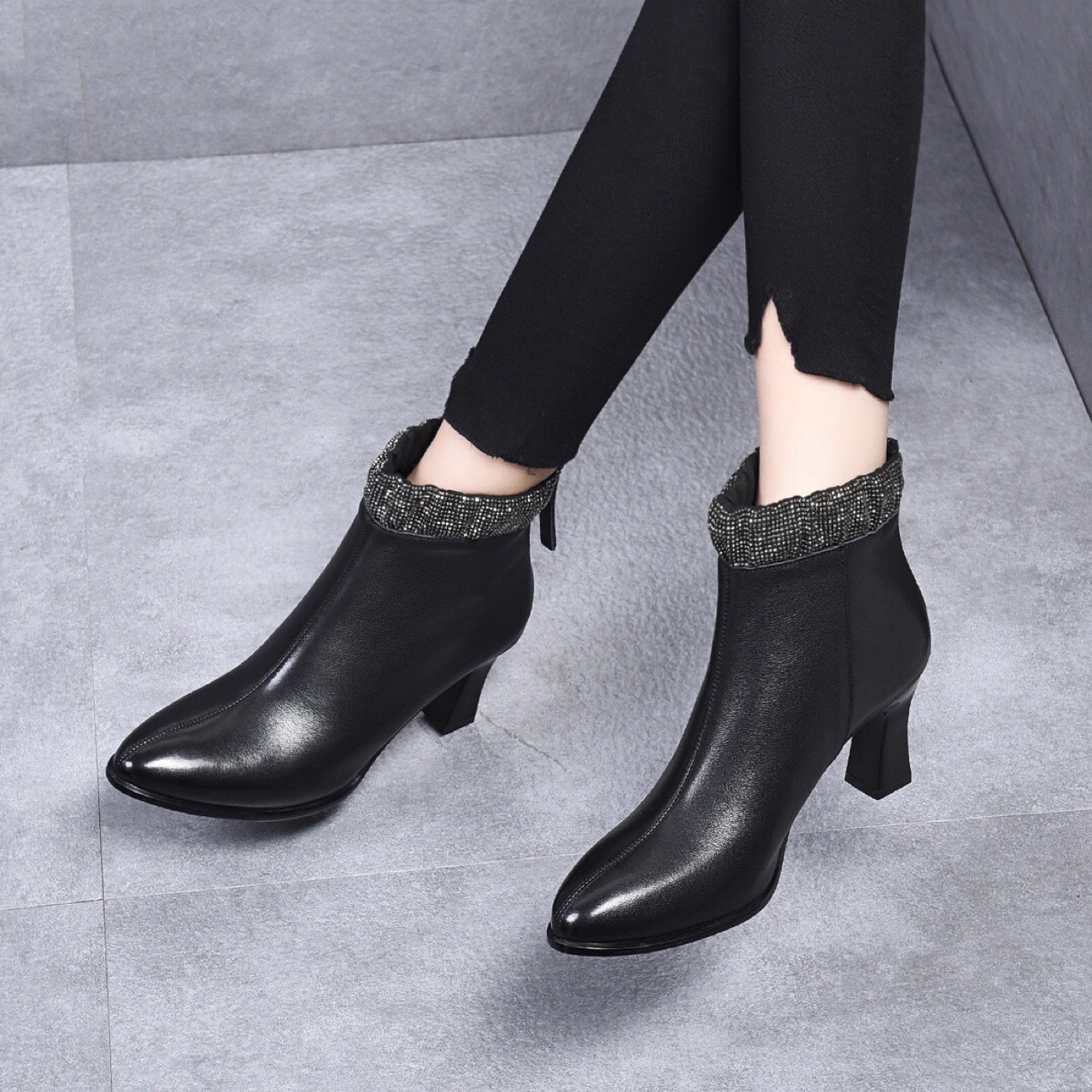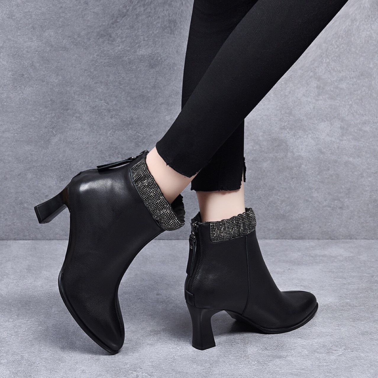 Đôi bốt cổ thấp này có phần mũi nhọn và gót thanhai mảnh, tạo dáng thanh lịch. Kiểu dáng bốt thể thao cổ điển với đường kéo hai bên giúp bạn mang vào và tháo ra dễ dàng. Sản phẩm được làm từ chất liệu da bò mềm mại, cho cảm giác thoải mái khi sử dụng. Bạn có thể phối cùng quần jeans, váy hay quần tây để tạo điểm nhấn nổi bật cho trang phục hằng ngày. | Tên sản phẩm: Boot Cổ Thấp Nữ Chất Liệu Da Bò Mũi Nhọn Gót Nhọn Hàng Mùa Xuân Thu Đông Phong Cách Âu Mỹ - Giày Dép Nữ | Mã sản phẩm: D3775 - Giá: 1.390.000đ | Mã nhà sản xuất: TOREHU-G04Hình ảnh sản phẩm