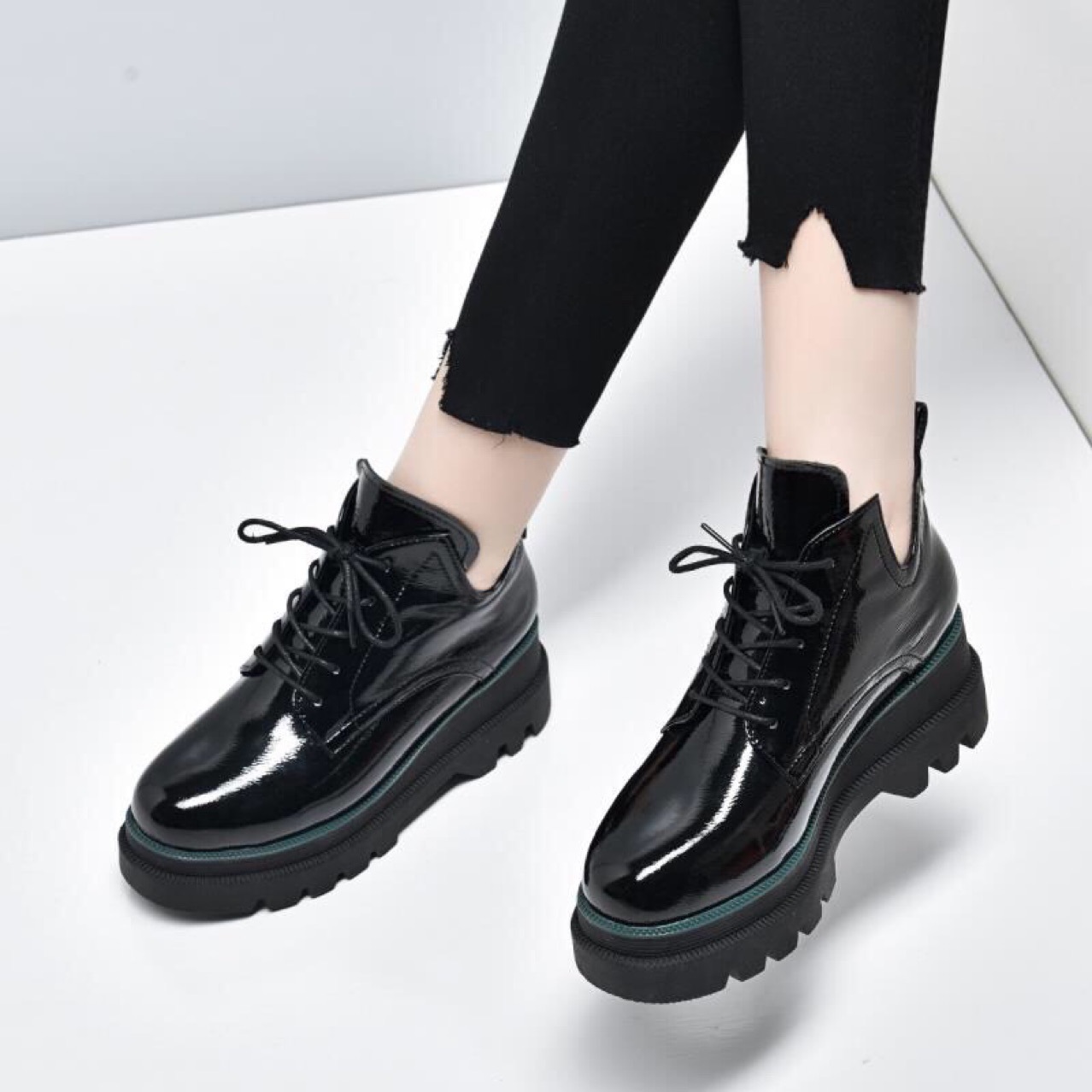 Đôi bốt cổ thấp này có kiểu dáng cổ điển với phần đế dày vững chãi, mũi tròn và dây cột tiện lợi. Chất da bóng mịn tạo nên vẻ ngoài sáng đẹp và dễ lau chùi. Kiểu thiết kế này phù hợp để phối cùng nhiều trang phục khác nhau trong mùa thu đông. Bạn chỉ cần xỏ chân vào, cột dây thật chặt là đã có thể thoải mái di chuyển cả ngày dài. | Tên sản phẩm: Boot Cổ Thấp Nữ Chất Liệu Da Bò Mũi Tròn Đế Cao Hàng Mùa Xuân Thu Đông - Giày Dép Nữ | Mã sản phẩm: D3789 - Giá: 1.290.000đ | Mã nhà sản xuất: TOREHU-G04Hình ảnh sản phẩm