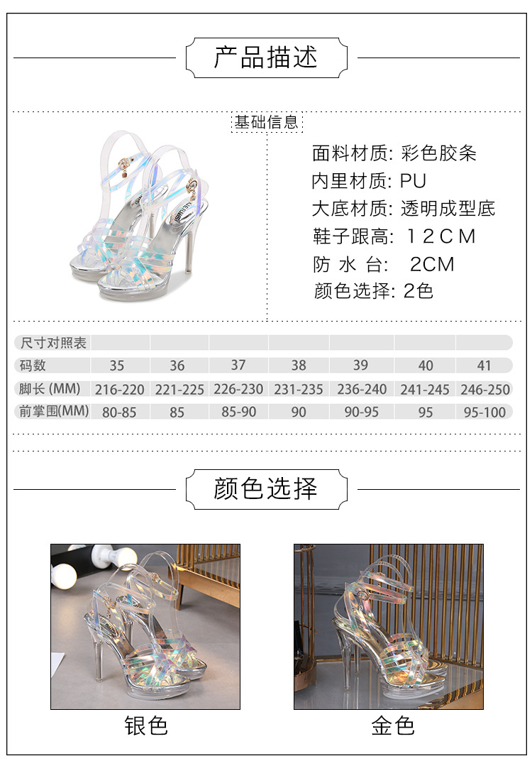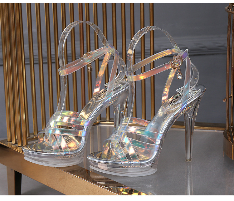 Giày cao gót nữ với lớp sơn bóng tạo vẻ ngoài tinh tế. Điểm nhấn đặc biệt đến từ dải chất dẻo trong suốt có thể đổi màu nhẹ dưới ánh sáng, tạo nên nét riêng biệt. Kiểu dáng sandal mở mũi mang lại sự thông thoáng. Dáng giày thanh lịch, dễ dàng kết hợp cùng nhiều trang phục khác nhau. Sử dụng phù hợp cho các dịp gặp mặt hoặc dạo phố. | Tên sản phẩm: Giày Cao Gót Nữ - Giày Dép Nữ | Mã sản phẩm: D4952 - Giá: 670.000đ | Mã nhà sản xuất: MATYAL-G02Hình ảnh sản phẩm