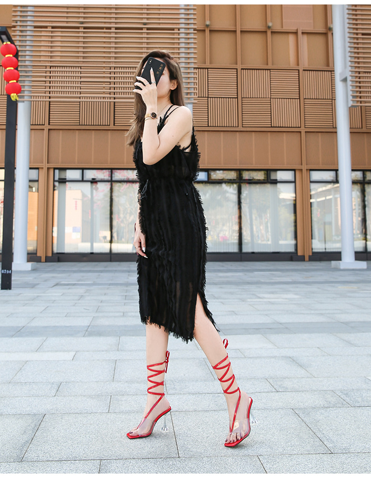 Đôi giày sandal nữ này có phần đế làm từ chất liệu trong suốt như pha lê, tạo điểm nhấn bắt mắt. Phong cách thiết kế La Mã với các dây quấn mắt cá chân mang đến vẻ đẹp quyến rũ và cá tính. Sản phẩm có đầy đủ các cỡ giày lớn dành cho nhiều đối tượng. Bạn chỉ cần quấn các dây đ quanh bàn chân và mắt cá, sau đó cố định lại bằng khóa là đã có một set đồ thời thượng. | Tên sản phẩm: Giày Cao Gót Nữ Big Size Ngoại Cỡ Trong Suốt Phong Cách Âu Mỹ - Giày Dép Nữ | Mã sản phẩm: D4954 - Giá: 640.000đ | Mã nhà sản xuất: MATYAL-G02Hình ảnh sản phẩm