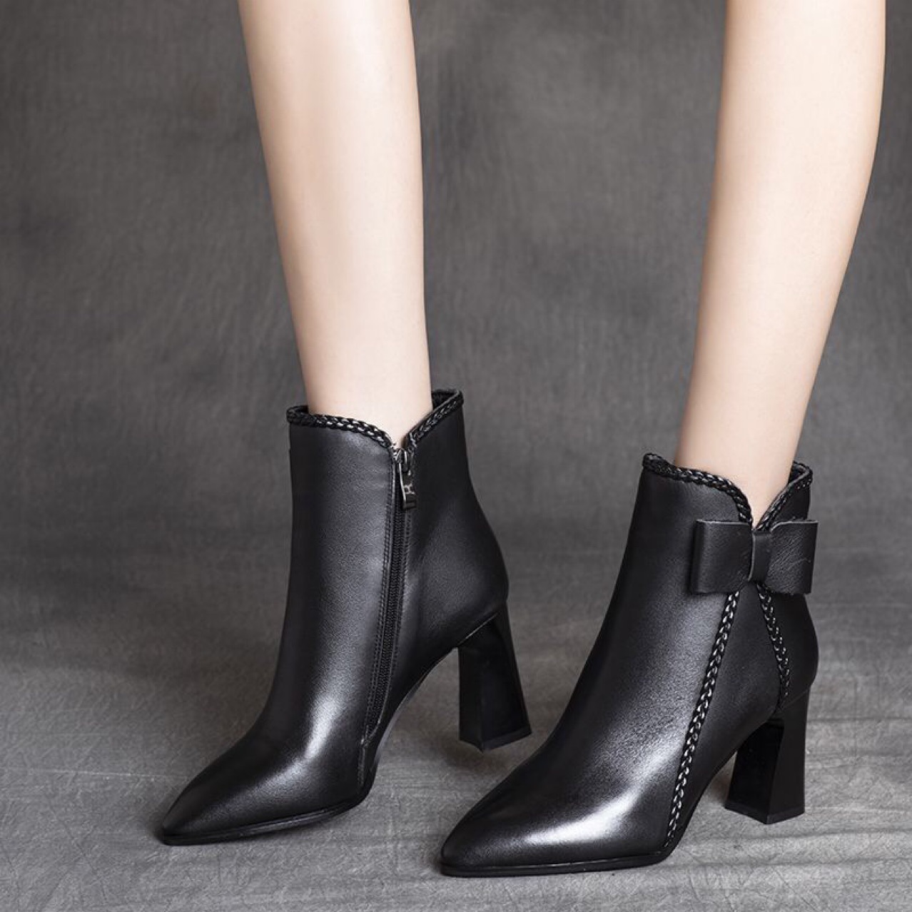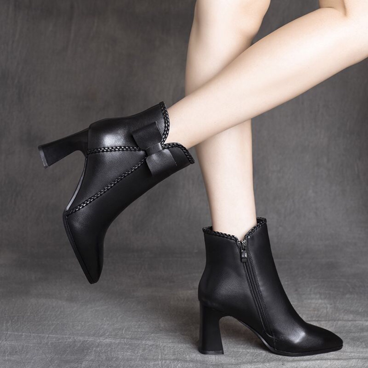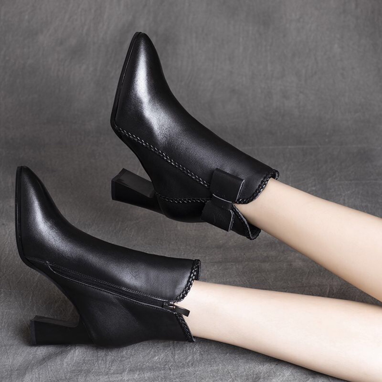 Đôi bốt cổ thấp dành cho nữ, kiểu dáng mũi nhọn thanh lịch. Sản phẩm được làm từ chất liệu da thật, mang lại cảm giác êm ái và bền đẹp. Phần gót được thiết kế vừa phải, giúp tôn dáng và dễ dàng di chuyển. Bên trong được lót một lớp êm, phù hợp để mang trong thời tiết se lạnh. Bạn có thể phối cùng quần jeans, váy hay nhiều trang phục khác nhau để tạo điểm nhấn cho tổng thể. | Tên sản phẩm: Giày Boot Cổ Thấp Nữ Chất Liệu Da Bò Mũi Nhọn Gót Vuông Hàng Mùa Xuân Thu Đông - Giày Dép Nữ | Mã sản phẩm: D5421 - Giá: 1.390.000đ | Mã nhà sản xuất: TOREHU-G04Hình ảnh sản phẩm