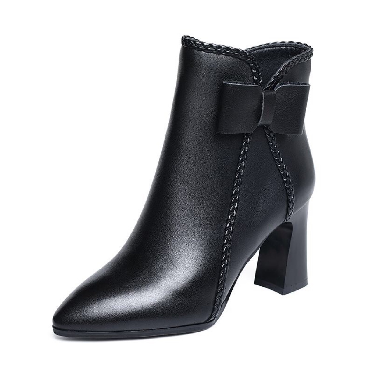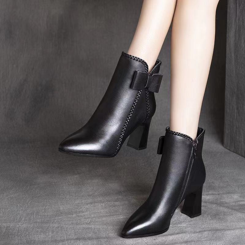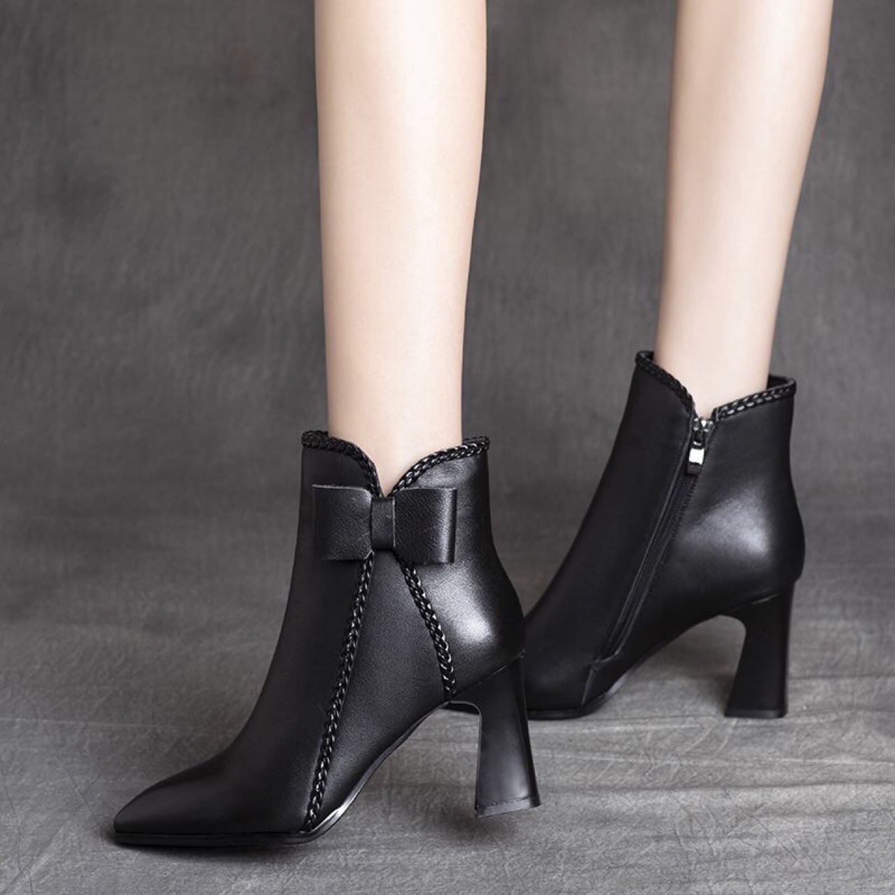 Đôi bốt cổ thấp dành cho nữ, kiểu dáng mũi nhọn thanh lịch. Sản phẩm được làm từ chất liệu da thật, mang lại cảm giác êm ái và bền đẹp. Phần gót được thiết kế vừa phải, giúp tôn dáng và dễ dàng di chuyển. Bên trong được lót một lớp êm, phù hợp để mang trong thời tiết se lạnh. Bạn có thể phối cùng quần jeans, váy hay nhiều trang phục khác nhau để tạo điểm nhấn cho tổng thể. | Tên sản phẩm: Giày Boot Cổ Thấp Nữ Chất Liệu Da Bò Mũi Nhọn Gót Vuông Hàng Mùa Xuân Thu Đông - Giày Dép Nữ | Mã sản phẩm: D5421 - Giá: 1.390.000đ | Mã nhà sản xuất: TOREHU-G04Hình ảnh sản phẩm