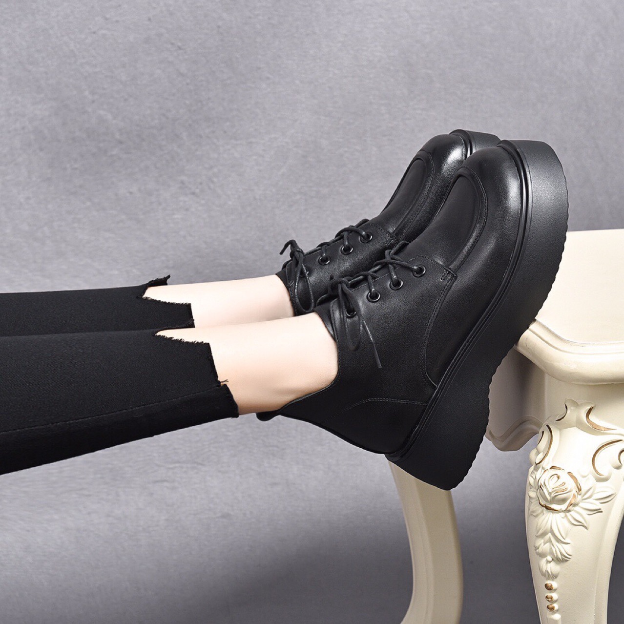 Đôi bốt cổ thấp nữ tính này có phần đế dày tạo dáng đẹp và tăng thêm chiều cao. Sản phẩm làm từ chất liệu da mềm, kết hợp cả dây buộc và khóa kéo cho phép bạn điều chỉnh ôm chân cách dễ dàng. Kiểu dáng trẻ trung, năng động, rất dễ phối hợp với nhiều loại trang phục khác nhau như quần jeans hay váy. Bạn có thể mang chúng hàng ngày để tạo điểm nhấn cho phong cách của mình. | Tên sản phẩm: Boot Cổ Thấp Nữ Đế Cao Hàng Mùa Xuân Thu Đông - Giày Dép Nữ | Mã sản phẩm: D5423 - Giá: 1.350.000đ | Mã nhà sản xuất: TOREHU-G04Hình ảnh sản phẩm