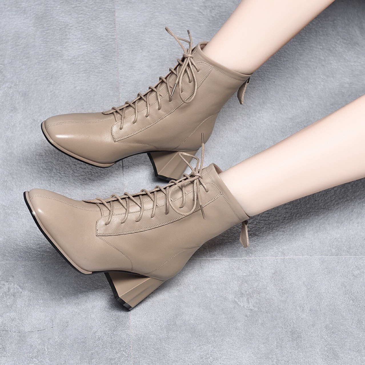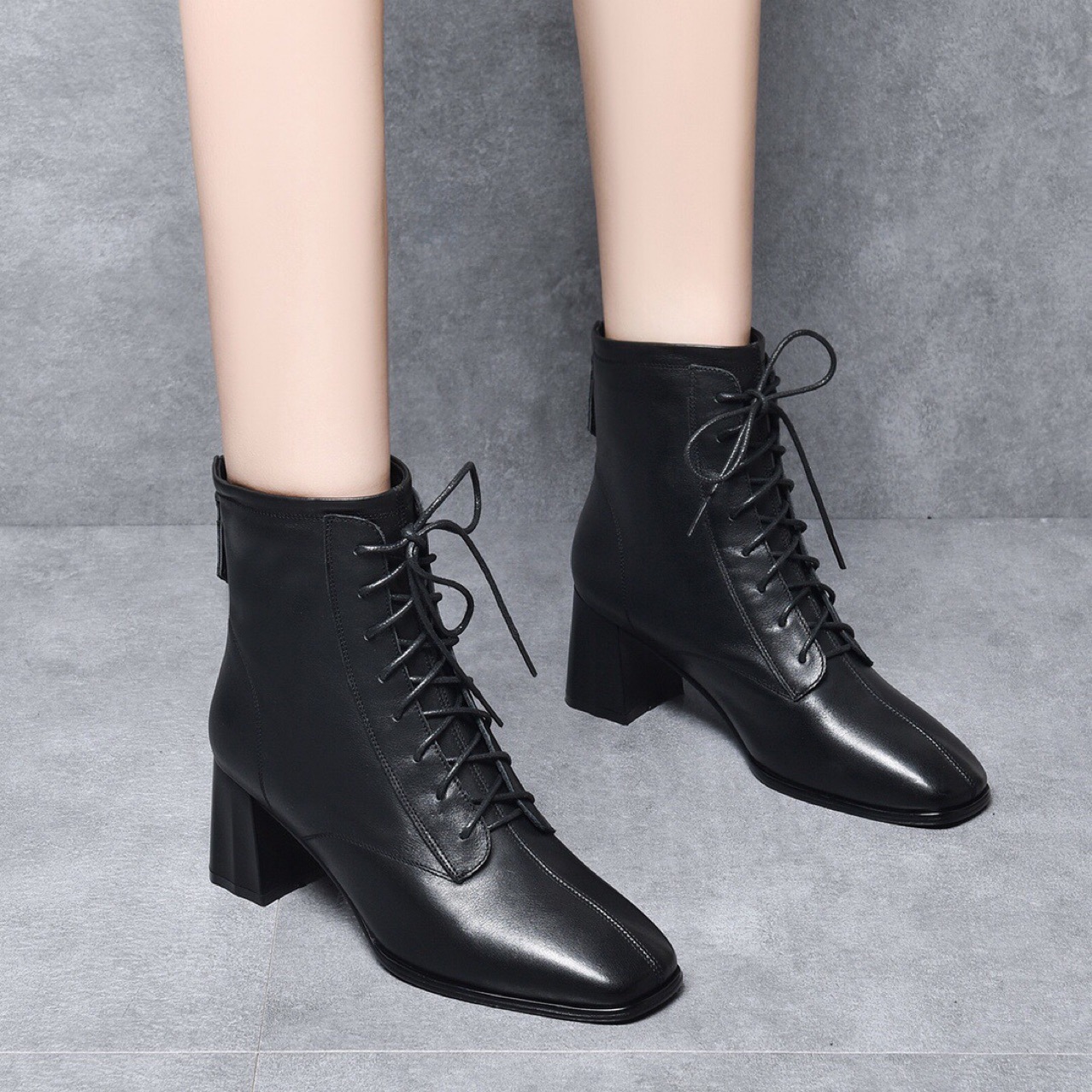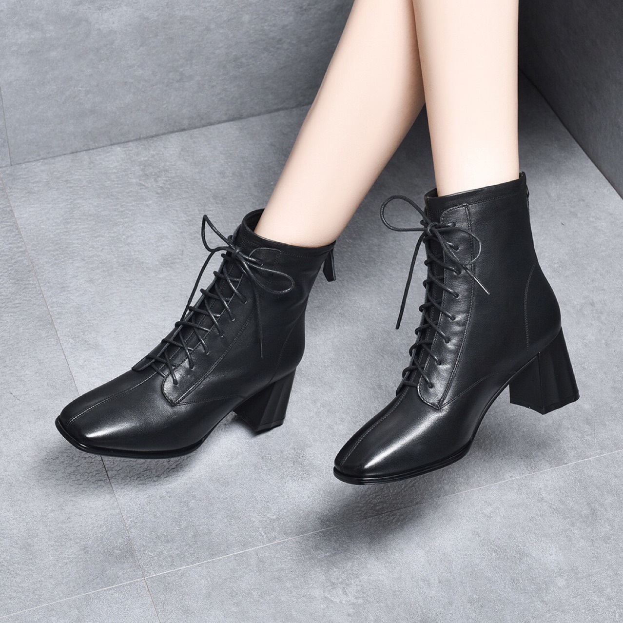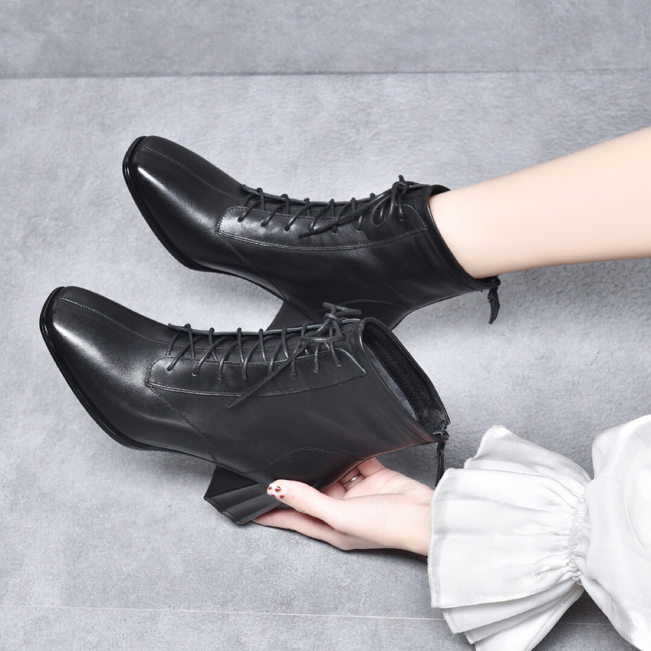 Đôi bốt cổ thấp này có phần mũi vuông và đế thấp vững chãi, tạo nên phong cách thời trang cổ điển. Sản phẩm được làm từ chất liệu da mềm, có dây buộc điều chỉnh ôm vừa chân. Kiểu dáng phù hợp để phối cùng nhiều loại trang phục khác nhau trong những ngày trời mát. Bạn có thể mang chúng hằng ngày, dễ dàng vệ sinh bề mặt bằng khăn mềm ẩm để giữ giày luôn sạch đẹp. | Tên sản phẩm: Boot Cổ Thấp Nữ Chất Liệu Da Bò Gót Vuông Hàng Mùa Xuân Thu Đông - Giày Dép Nữ | Mã sản phẩm: D5424 - Giá: 1.520.000đ | Mã nhà sản xuất: TOREHU-G04Hình ảnh sản phẩm