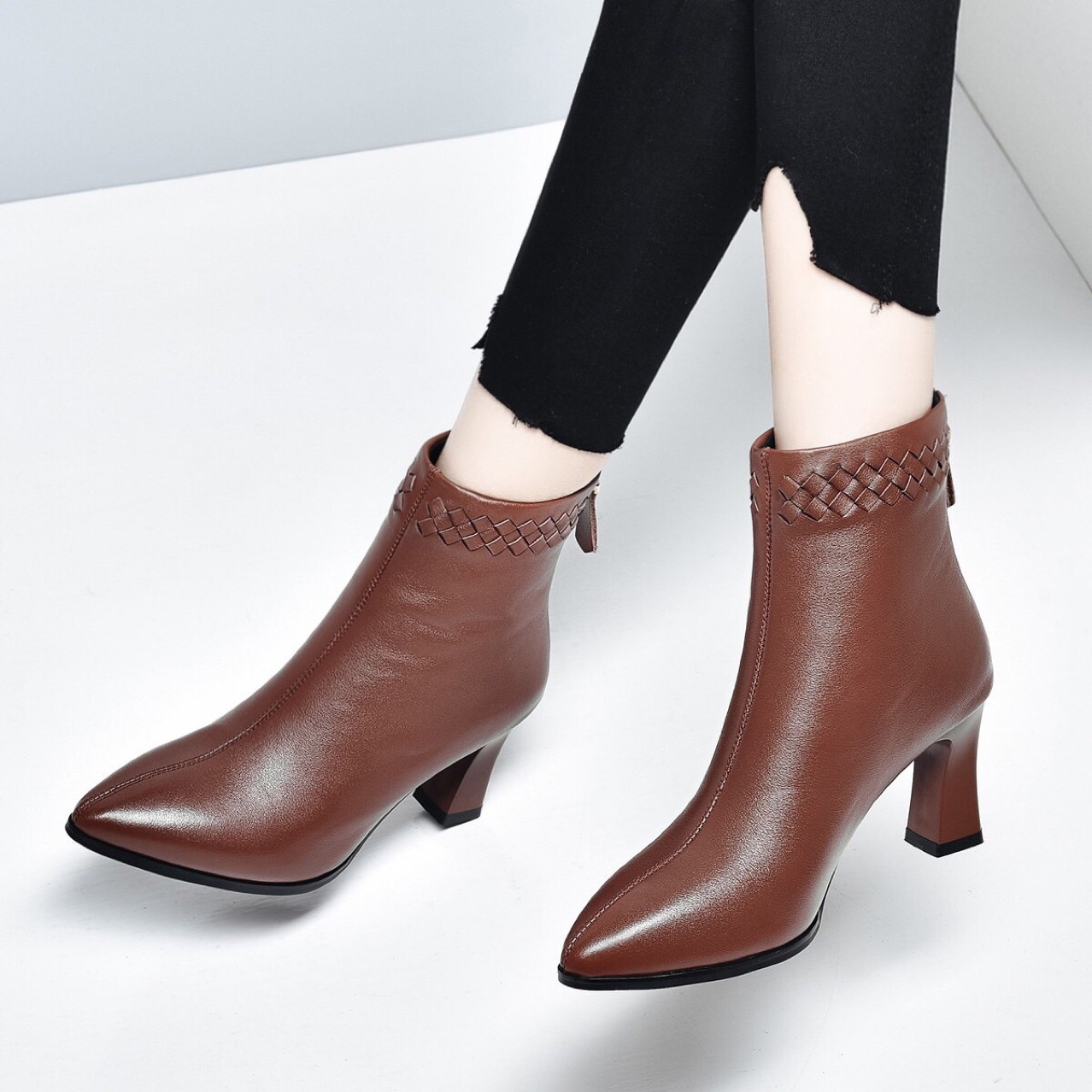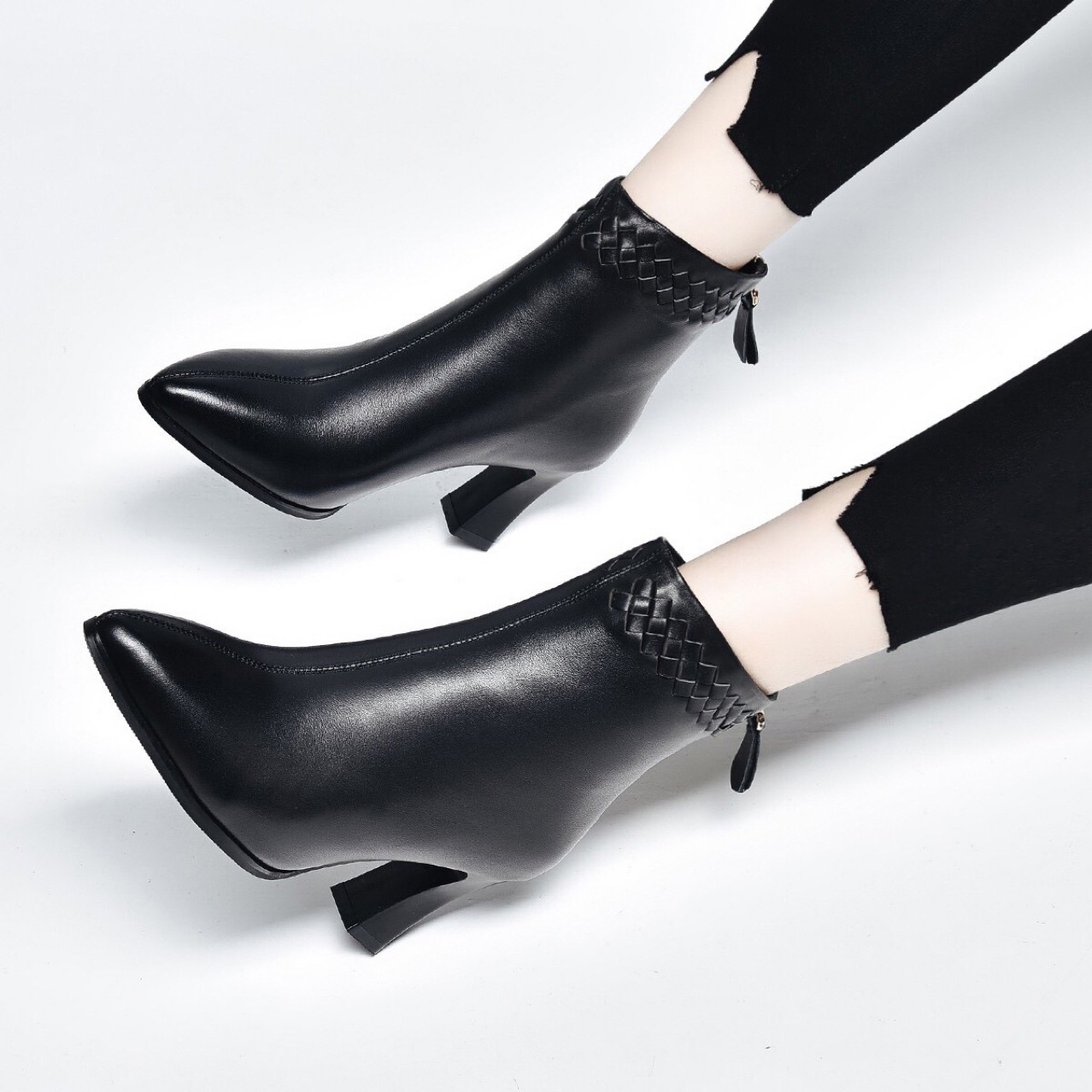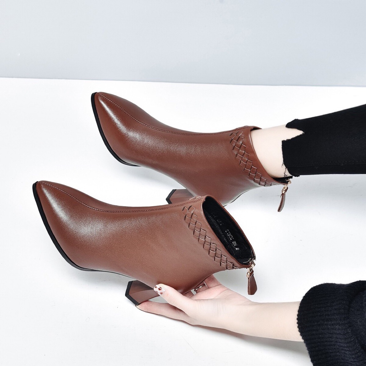 Đôi bốt cổ thấp này mang phong cách Anh điệu đà, rất dễ phối đồ. Kiểu dáng mũi nhọn cùng phần gót to vừa phải giúp tôn dáng đôi chân một cách tinh tế. Bạn có thể diện cùng quần jeans, váy hay quần tây để tạo nên những vẻ ngoài ấn tượng cho mùa thu đông. Sản phẩm phù hợp để sử dụng hằng ngày, đi làm hoặc dạo phố. | Tên sản phẩm: Boot Cổ Thấp Nữ Mũi Nhọn Gót Vuông Hàng Mùa Xuân Thu Đông - Giày Dép Nữ | Mã sản phẩm: D5425 - Giá: 1.380.000đ | Mã nhà sản xuất: TOREHU-G04Hình ảnh sản phẩm