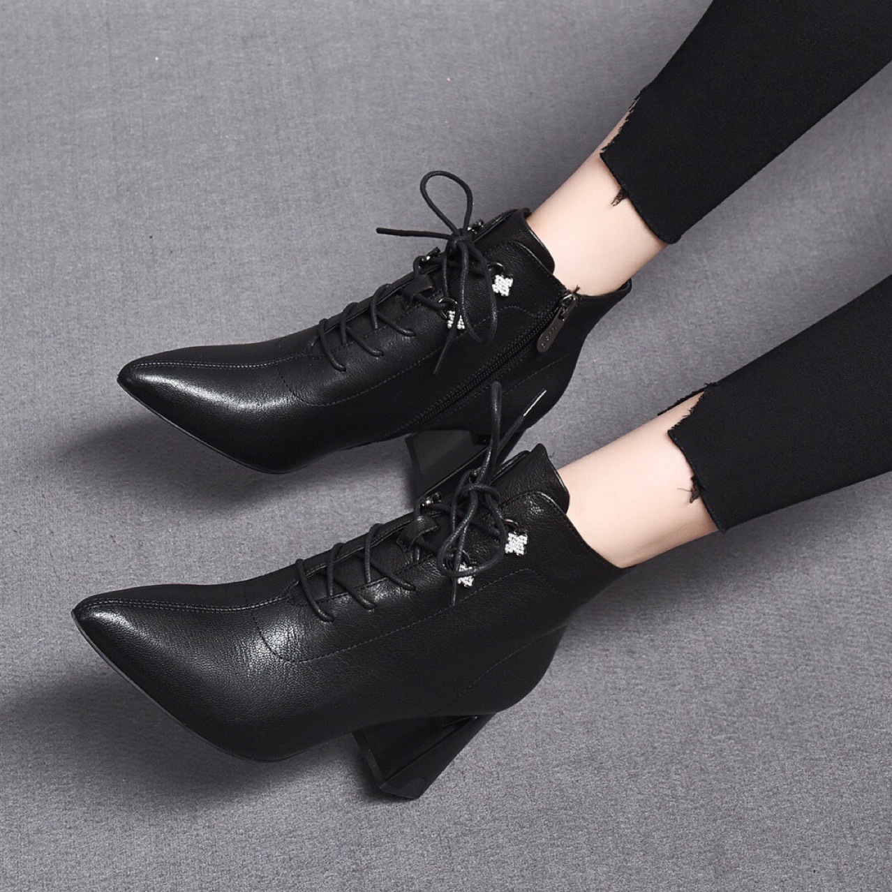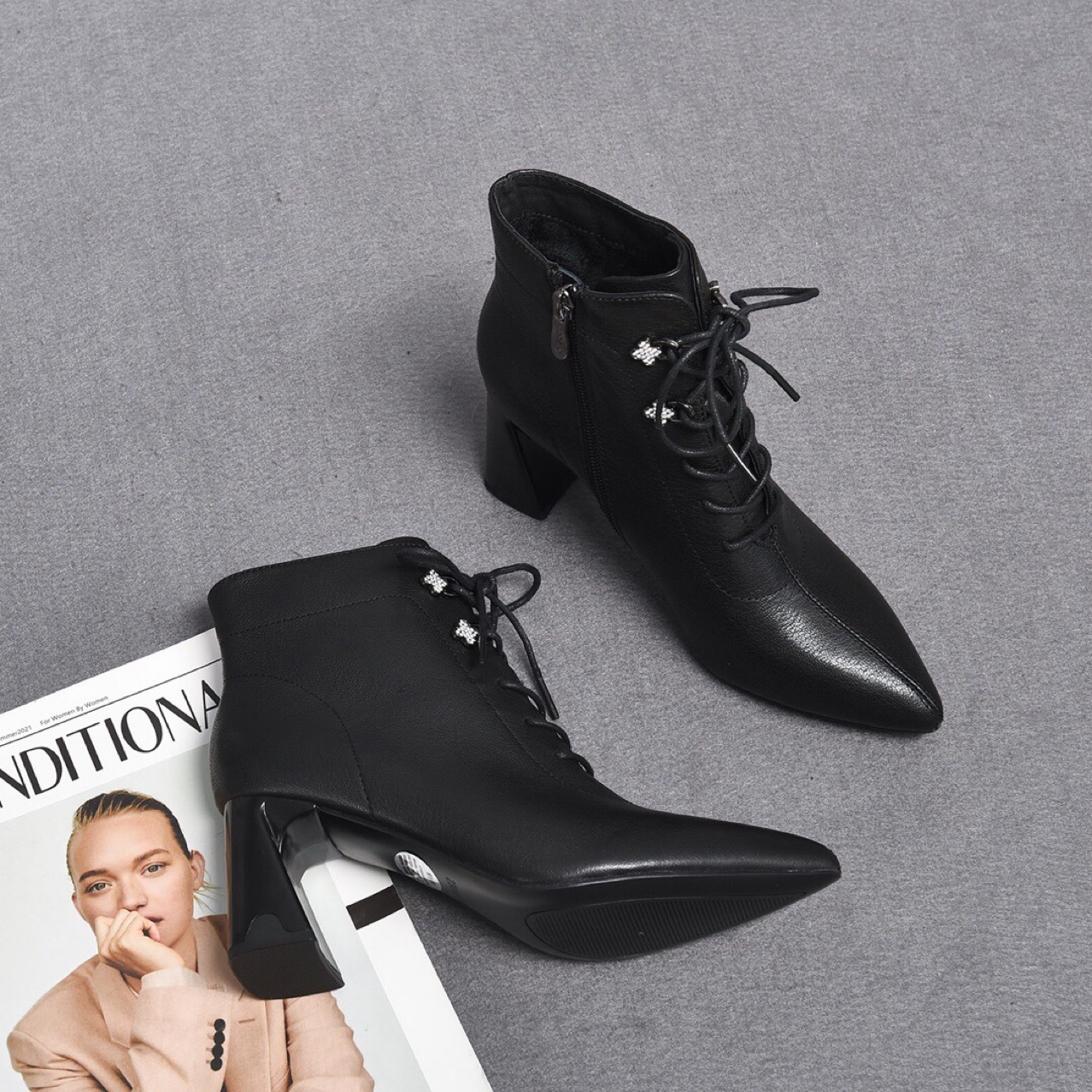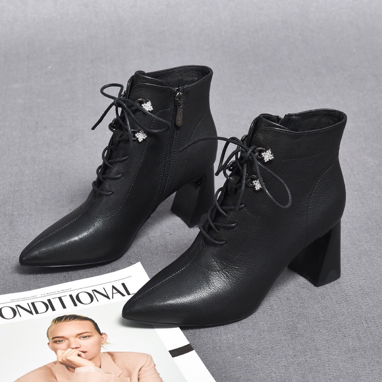 Đôi bốt cổ thấp này mang phong cách cổ điển, phù hợp cho mùa thu đông. Sản phẩm có phần mũi nhọn, gót đế chắc chắn và được trang bị khóa kéo bên hông để mang vào dễ dàng. Dây rút phía trước giúp bạn điều chỉnh độ ôm vừa vặn. Kiểu dáng linh hoạt, dễ phối với nhiều trang phục khác nhau. Bạn có thể sử dụng hằng ngày để tạo điểm nhấn năng động và thoải mái. | Tên sản phẩm: Boot Cổ Thấp Nữ Mũi Nhọn Gót Vuông Hàng Mùa Xuân Thu Đông Phục Cổ Cổ Điển - Giày Dép Nữ | Mã sản phẩm: D5432 - Giá: 1.740.000đ | Mã nhà sản xuất: TOREHU-G05Hình ảnh sản phẩm