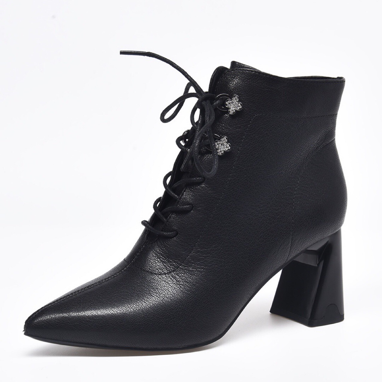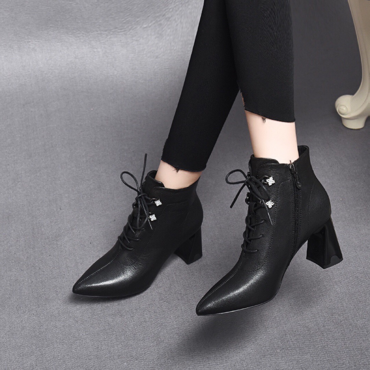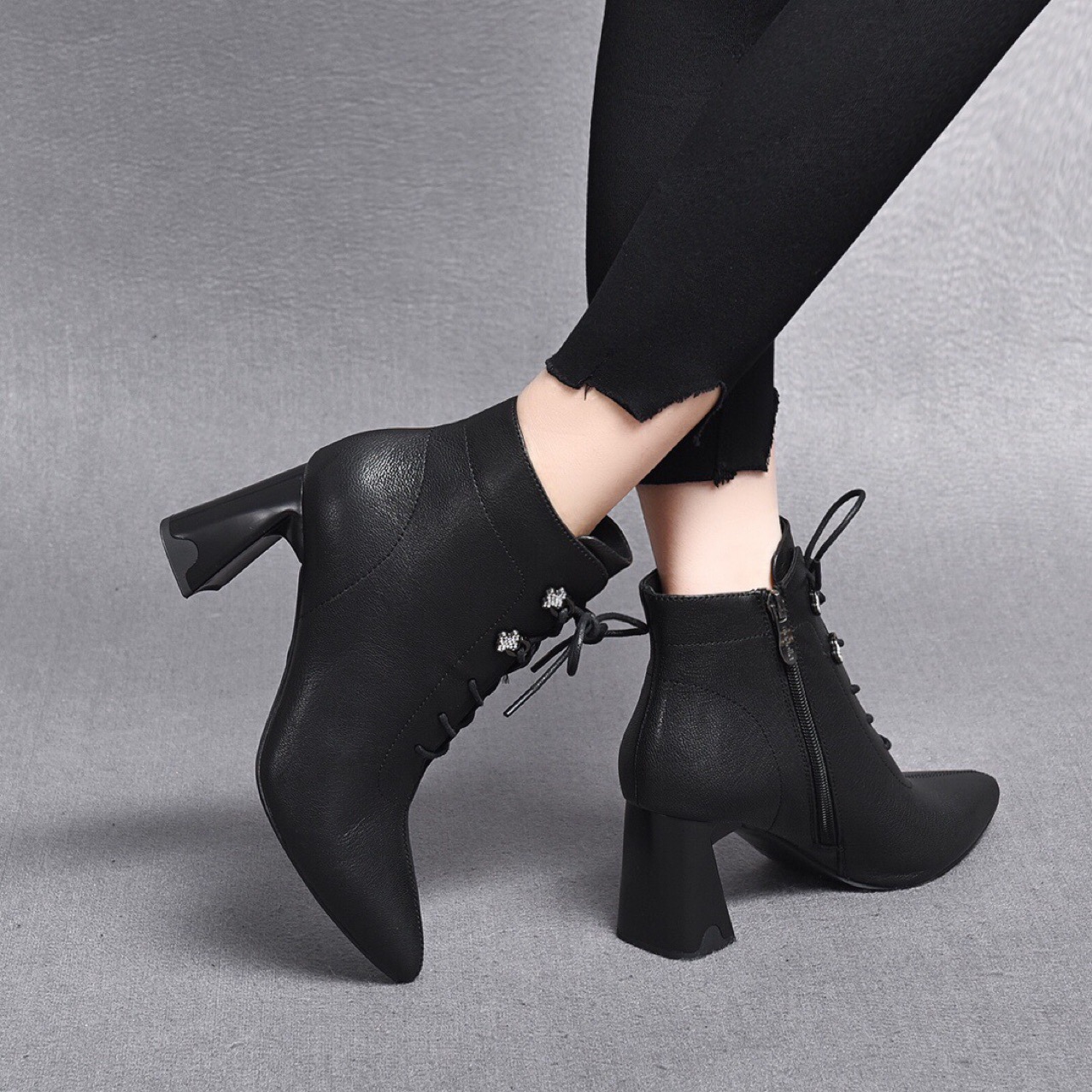 Đôi bốt cổ thấp này mang phong cách cổ điển, phù hợp cho mùa thu đông. Sản phẩm có phần mũi nhọn, gót đế chắc chắn và được trang bị khóa kéo bên hông để mang vào dễ dàng. Dây rút phía trước giúp bạn điều chỉnh độ ôm vừa vặn. Kiểu dáng linh hoạt, dễ phối với nhiều trang phục khác nhau. Bạn có thể sử dụng hằng ngày để tạo điểm nhấn năng động và thoải mái. | Tên sản phẩm: Boot Cổ Thấp Nữ Mũi Nhọn Gót Vuông Hàng Mùa Xuân Thu Đông Phục Cổ Cổ Điển - Giày Dép Nữ | Mã sản phẩm: D5432 - Giá: 1.740.000đ | Mã nhà sản xuất: TOREHU-G05Hình ảnh sản phẩm