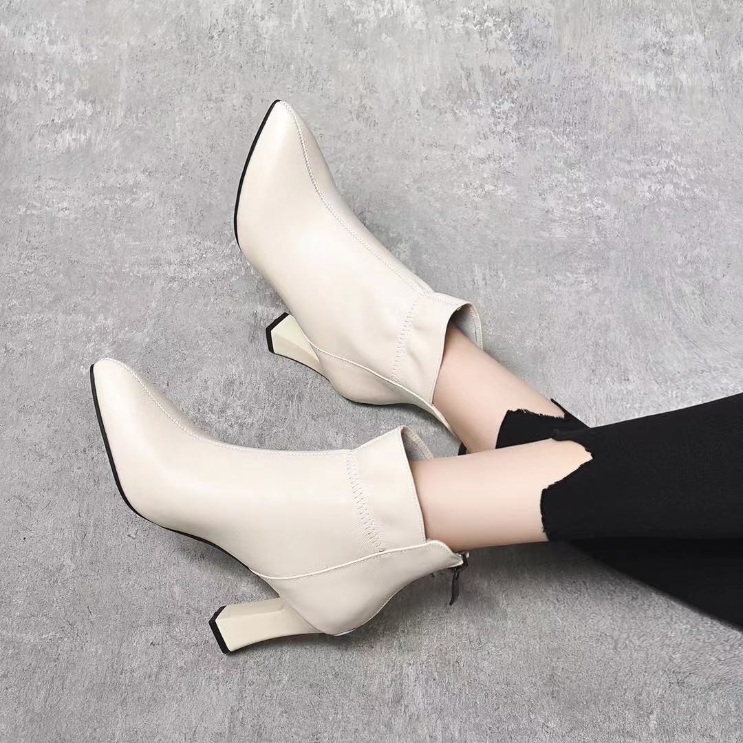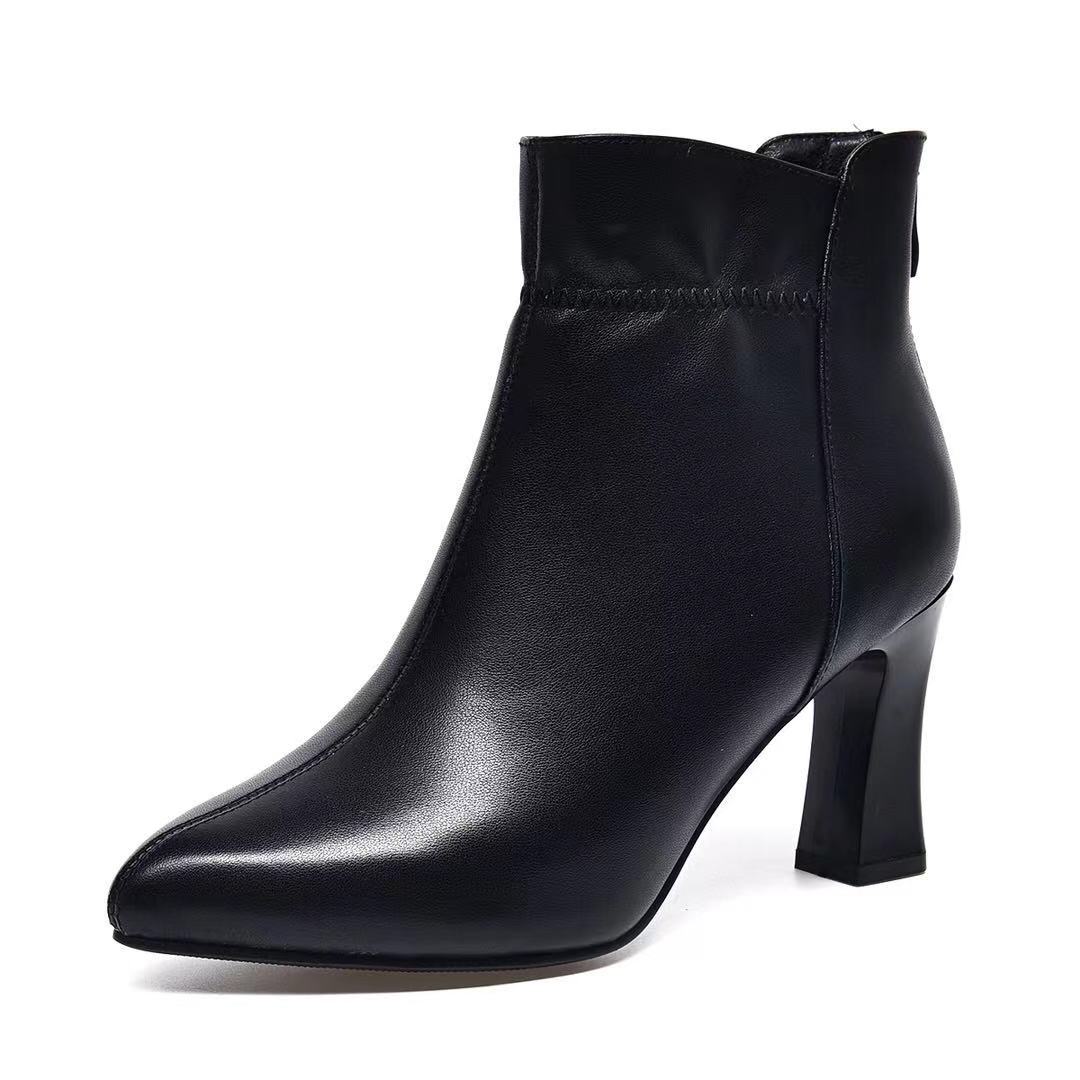 Đôi bốt này có mũi nhọn và phần gót thấp vừa phải, giúp tạo dáng thanh lịch mà vẫn đảm bảo sự thoải mái khi di chuyển. Chất liệu da thật mềm mại, ôm chân nhẹ nhàng. Kiểu dáng cổ thấp dễ dàng kết hợp với nhiều trang phục như quần jeans, váy hay quần tây. Bạn có thể mang chúng hàng ngày để đi làm, dạo phố hay trong những buổi gặp mặt thân mật. | Tên sản phẩm: Boot Cổ Thấp Nữ Chất Liệu Da Bò Mũi Nhọn Gót Vuông Hàng Mùa Xuân Thu Đông - Giày Dép Nữ | Mã sản phẩm: D5456 - Giá: 1.250.000đ | Mã nhà sản xuất: TOREHU-G04Hình ảnh sản phẩm