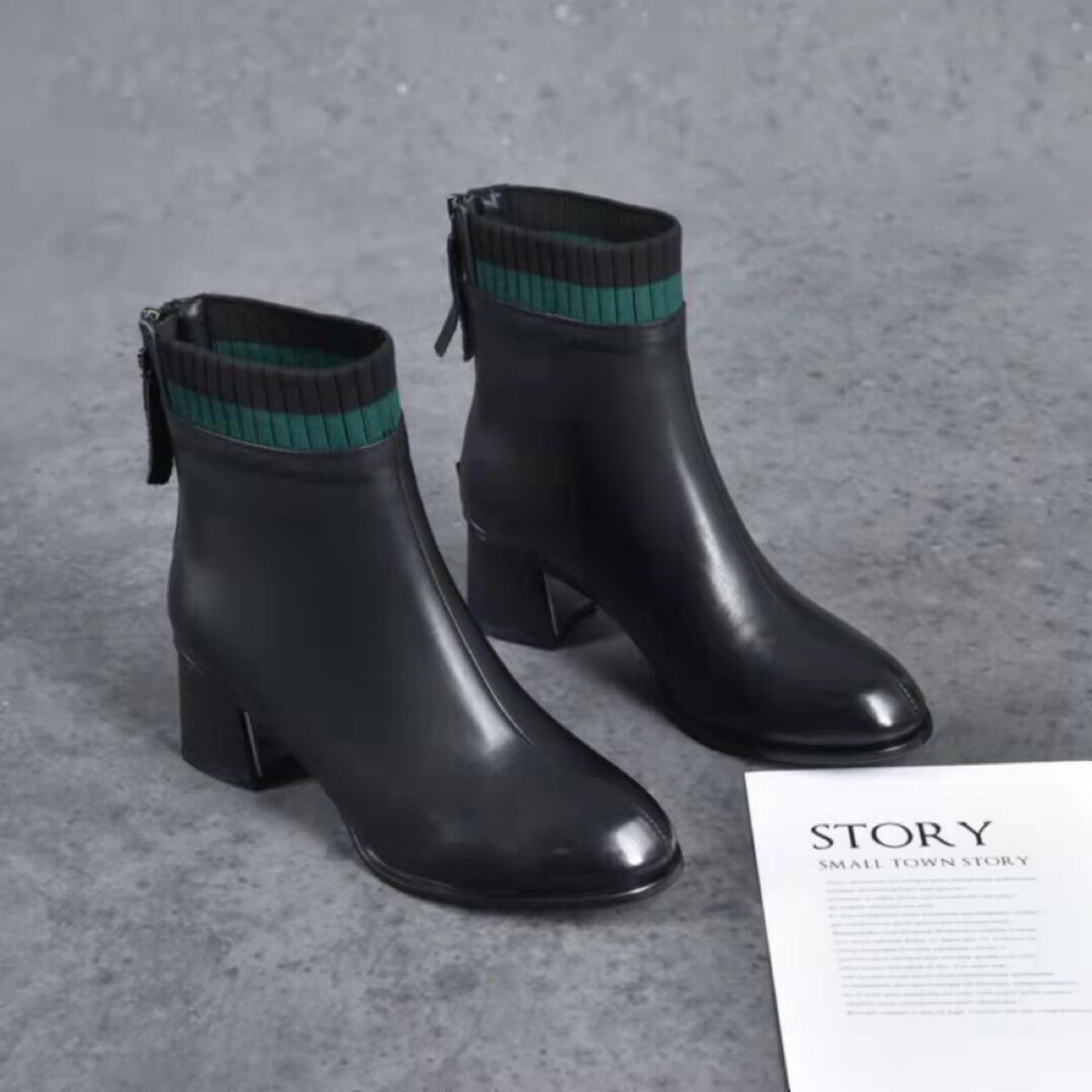 Đôi bốt nữ dáng cổ thấp, phù hợp cho mùa thu đông. Sản phẩm được làm từ chất liệu da thật, phần cổ bốt có viền dệt kim ôm ấm chân, giúp giữ nhiệt tốt. Kiểu dáng bốt búp bê với mũi tròn, đế có độ cao vừa phải tôn dáng. Bạn có thể dễ dàng phối cùng quần jeans, váy hay legging để tạo nên vẻ ngoại hình năng động, cá tính mỗi khi ra ngoài. | Tên sản phẩm: Boot Cổ Thấp Nữ Chất Liệu Da Bò Mũi Tròn Hàng Mùa Xuân Thu Đông - Giày Dép Nữ | Mã sản phẩm: D5457 - Giá: 1.250.000đ | Mã nhà sản xuất: TOREHU-G04Hình ảnh sản phẩm