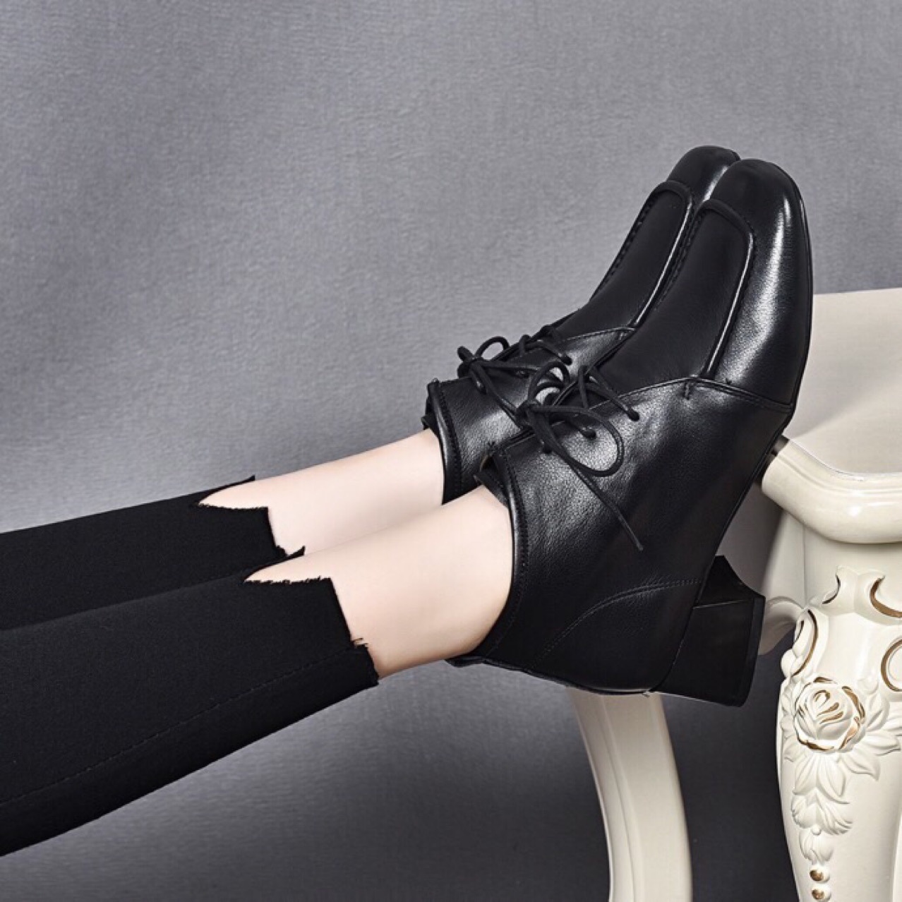 Đôi bốt cổ thấp dành cho nữ, được làm từ chất liệu da thật, mang phong cách Anh cổ điển. Mẫu mã mới ra mắt, kiểu dáng ôm gọn cổ chân, phù hợp thời tiết mùa xuân và mùa thu. Phần đế được thiết kế chắc chắn, giúp tăng chiều cao nhẹ và dễ dàng phối cùng nhiều trang phục như quần jeans hay váy. Sử dụng hàng ngày và vệ sinh bằng khăn mềm ẩm để giữ giày bền đẹp. | Tên sản phẩm: Boot Cổ Thấp Nữ Chất Liệu Da Bò Gót Vuông Hàng Mùa Xuân Thu Đông - Giày Dép Nữ | Mã sản phẩm: D5465 - Giá: 1.110.000đ | Mã nhà sản xuất: TOREHU-G04Hình ảnh sản phẩm
