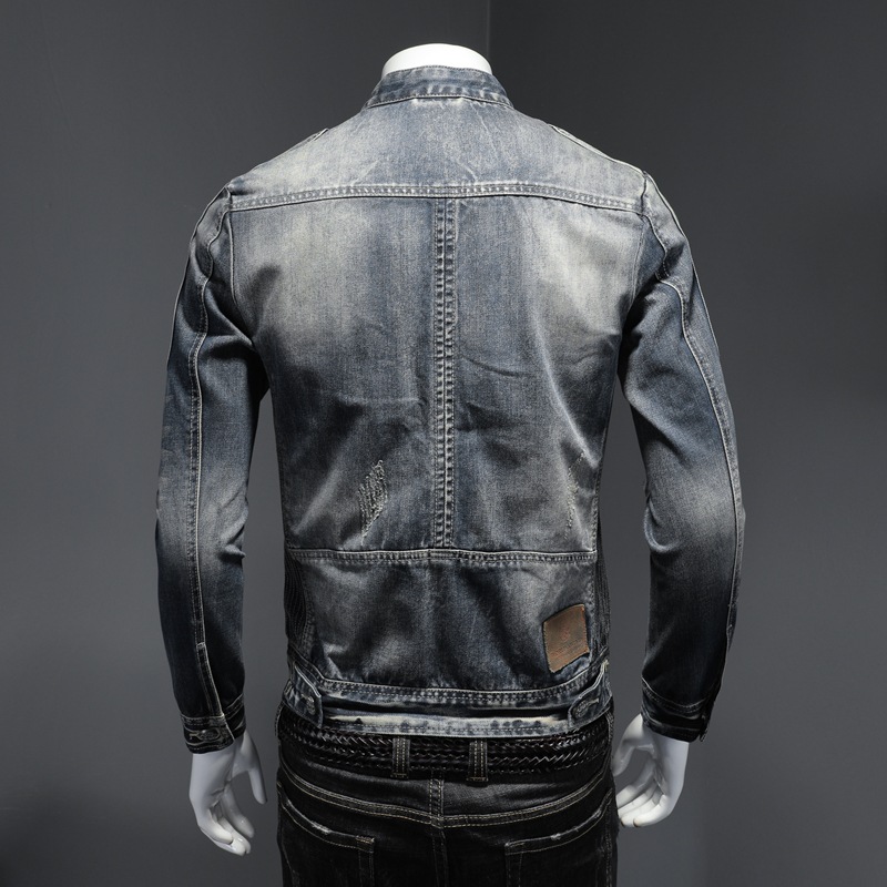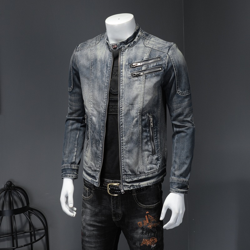 Áo khoác nam thiết kế kiểu cổ đứng có khóa kéo, lấy cảm hứng từ phong cách mạnh mẽ. Chất liệu vải bền chắc tạo cảm giác thoải mái khi mặc. Form áo ôm vừa phải giúp tôn dáng người mặc. Sản phẩm phù hợp để phối cùng quần jeans khi đi chơi hoặc lái xe. Dễ dàng kết hợp với nhiều trang phục khác nhau trong tủ đồ. | Tên sản phẩm: Áo Khoác Nam Chất Liệu Jean Bò Dáng Ôm Phong Cách Âu Mỹ - Thời Trang Nam | Mã sản phẩm: H7998 - Giá: 1.880.000đ | Mã nhà sản xuất: QITYGF-G05Hình ảnh sản phẩm