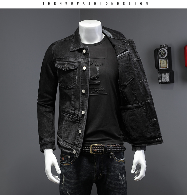 Áo khoác jeans nam phong cách châu Âu, lý tưởng cho tiết trời thu và xuân. Kiểu dáng cổ điển với màu đen bạc màu qua công nghệ giặt tạo vẻ đẹp hoài niệm. Chất liệu denim dày dặn, form dáng rộng thoải mái, phù hợp với nhiều vóc dáng. Dễ dàng phối cùng quần jeans hoặc quần vải để tạo điểm nhấn nổi bật. Bạn có thể mặc trực tiếp hoặc kết hợp như áo khoác ngoài cho những ngày se lạnh. | Tên sản phẩm: Áo Khoác Nam Chất Liệu Jean Bò Big Size Ngoại Cỡ Hàng Mùa Xuân Thu Đông Phục Cổ Cổ Điển - Thời Trang Nam | Mã sản phẩm: H8018 - Giá: 1.920.000đ | Mã nhà sản xuất: QITYGF-G05Hình ảnh sản phẩm
