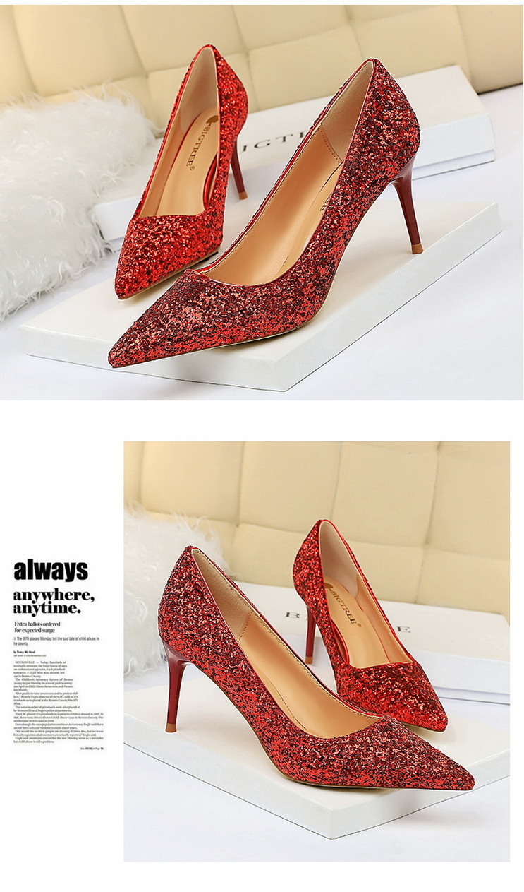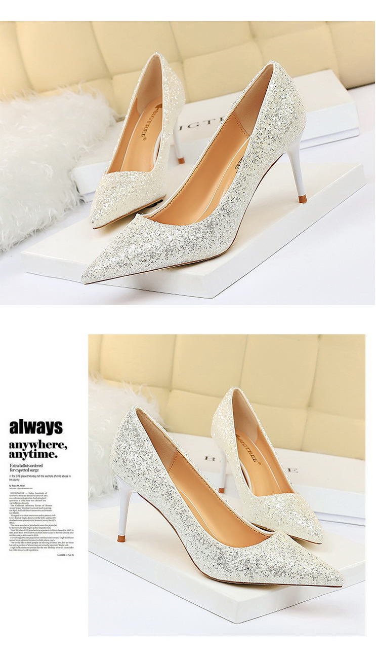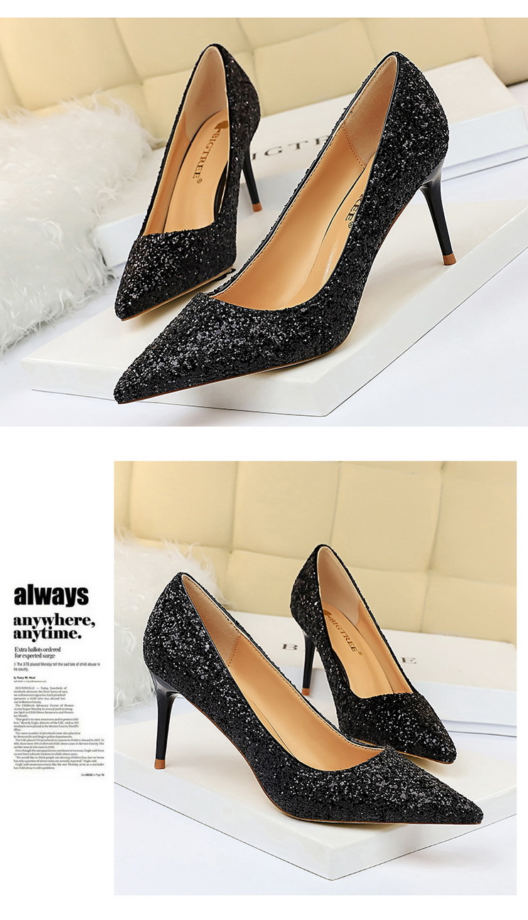 Đôi giày này có kiểu dáng phong cách châu Âu hiện đại, phù hợp cho các buổi tối hoặc khi đi chơi. Sản phẩm được thiết kế với gót nhọn thanh thoát, giúp tôn dáng đôi chân. Bề mặt giày được điểm xuyết nhiều hạt lấp lánh, tạo điểm nhấn nổi bật dưới ánh đèn. Bạn có thể dễ dàng phối cùng đầm body hay quần jeans để tạo vẻ ngoại ấn tượng. Chỉ cần lau nhẹ bằng khăn mềm sau khi sử dụng để giữ giày luôn sáng bóng. | Tên sản phẩm: Giày Cao Gót Nữ Gót Nhọn Phong Cách Âu Mỹ - Giày Dép Nữ | Mã sản phẩm: M7205 - Giá: 590.000đ | Mã nhà sản xuất: PITYIN-G01Hình ảnh sản phẩm