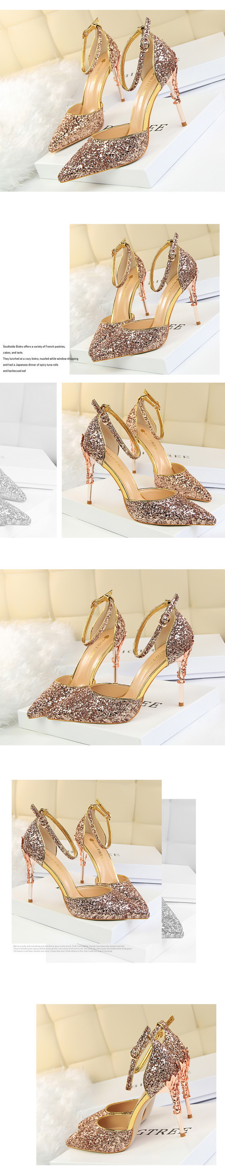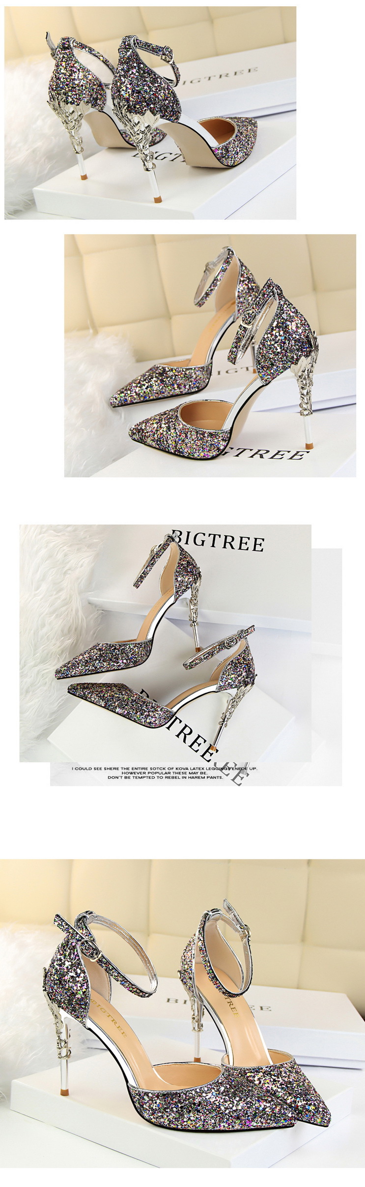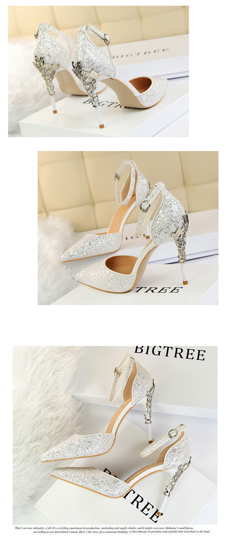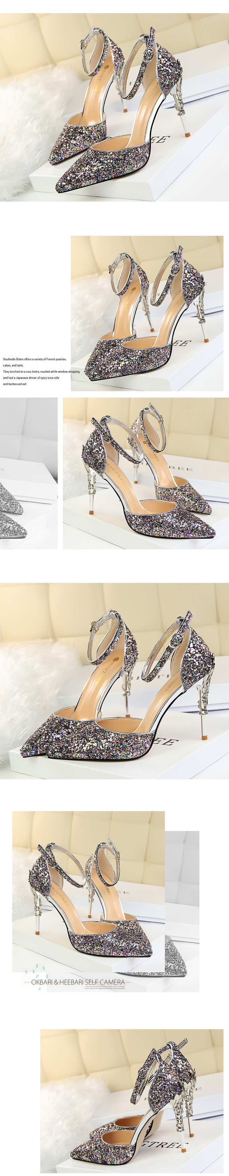 Đôi giày cao gót này mang phong cách phương Tây hiện đại, phù hợp cho các buổi tiệc tối. Dáng giày thiết kế kiểu quai ngang cùng phần gót làm từ kim loại bóng bẩy, tạo điểm nhấn nổi bật. Thân giày điểm xuyết những chi tiết khoét lưới tinh tế và được phủ lớp vảy óng ánh, giúp tôn dáng đôi chân. Khi sử dụng, chỉ cần quai ngang ôm vừa vặn vào mu bàn chân, gót cao vừa phải giúp bạn di chuyển thoải mái mà vẫn giữ được vẻ thanh thoát. | Tên sản phẩm: Giày Cao Gót Nữ Phong Cách Âu Mỹ - Giày Dép Nữ | Mã sản phẩm: M7226 - Giá: 680.000đ | Mã nhà sản xuất: PITYIN-G02Hình ảnh sản phẩm