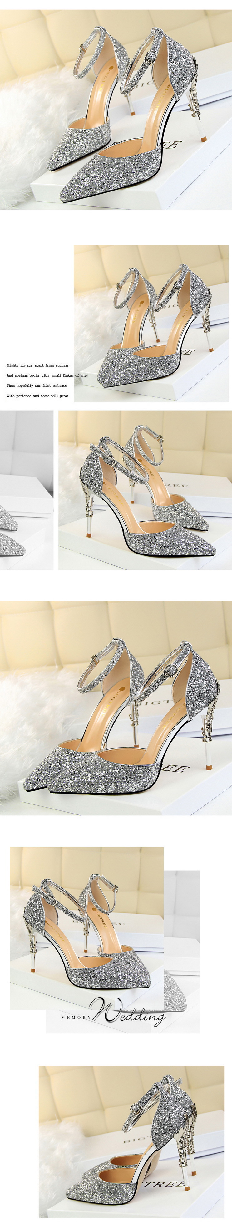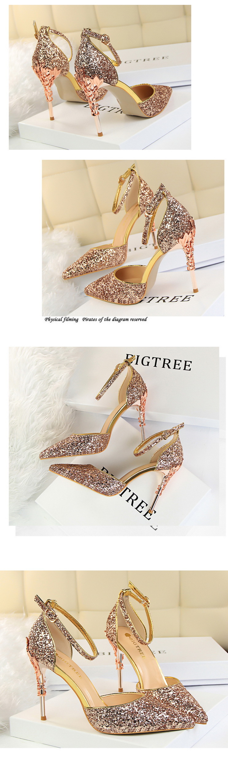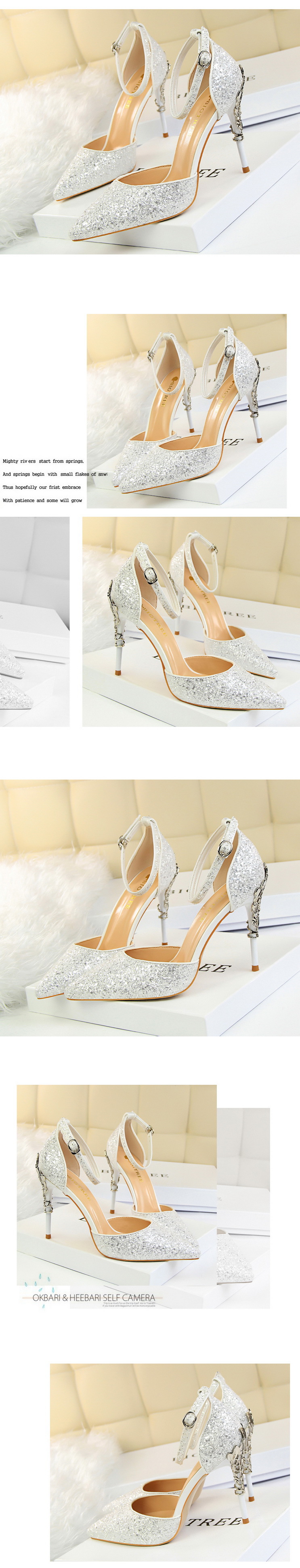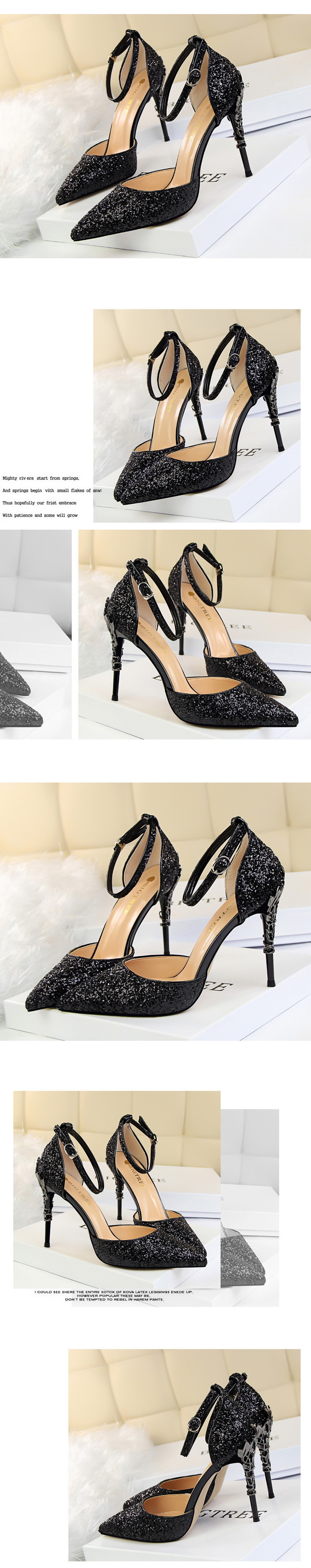 Đôi giày cao gót này mang phong cách phương Tây hiện đại, phù hợp cho các buổi tiệc tối. Dáng giày thiết kế kiểu quai ngang cùng phần gót làm từ kim loại bóng bẩy, tạo điểm nhấn nổi bật. Thân giày điểm xuyết những chi tiết khoét lưới tinh tế và được phủ lớp vảy óng ánh, giúp tôn dáng đôi chân. Khi sử dụng, chỉ cần quai ngang ôm vừa vặn vào mu bàn chân, gót cao vừa phải giúp bạn di chuyển thoải mái mà vẫn giữ được vẻ thanh thoát. | Tên sản phẩm: Giày Cao Gót Nữ Phong Cách Âu Mỹ - Giày Dép Nữ | Mã sản phẩm: M7226 - Giá: 680.000đ | Mã nhà sản xuất: PITYIN-G02Hình ảnh sản phẩm