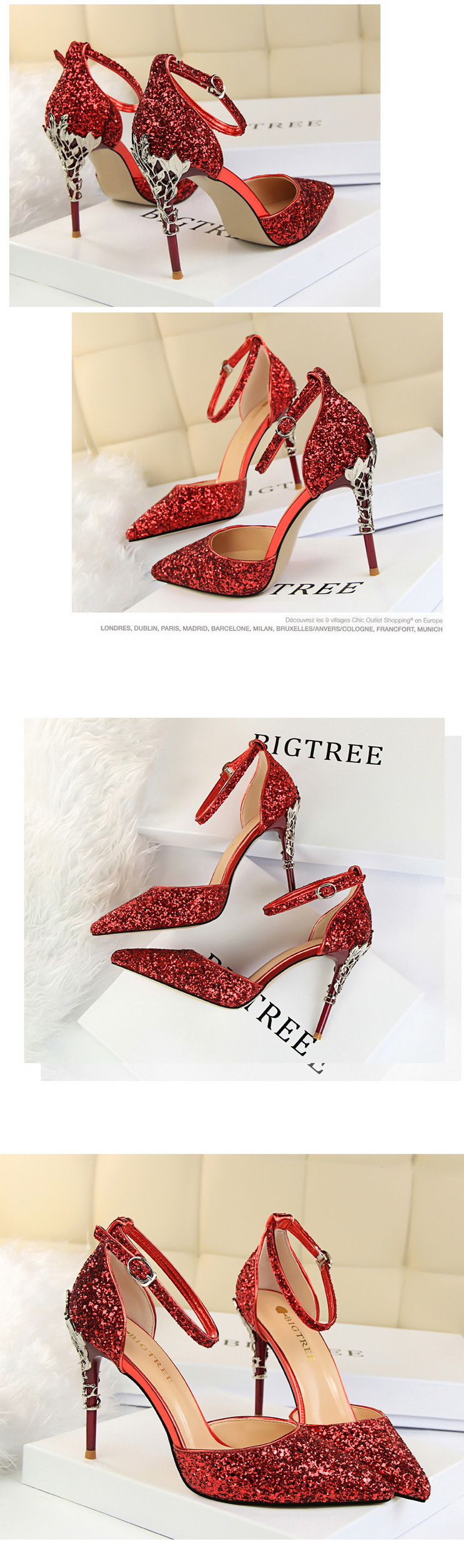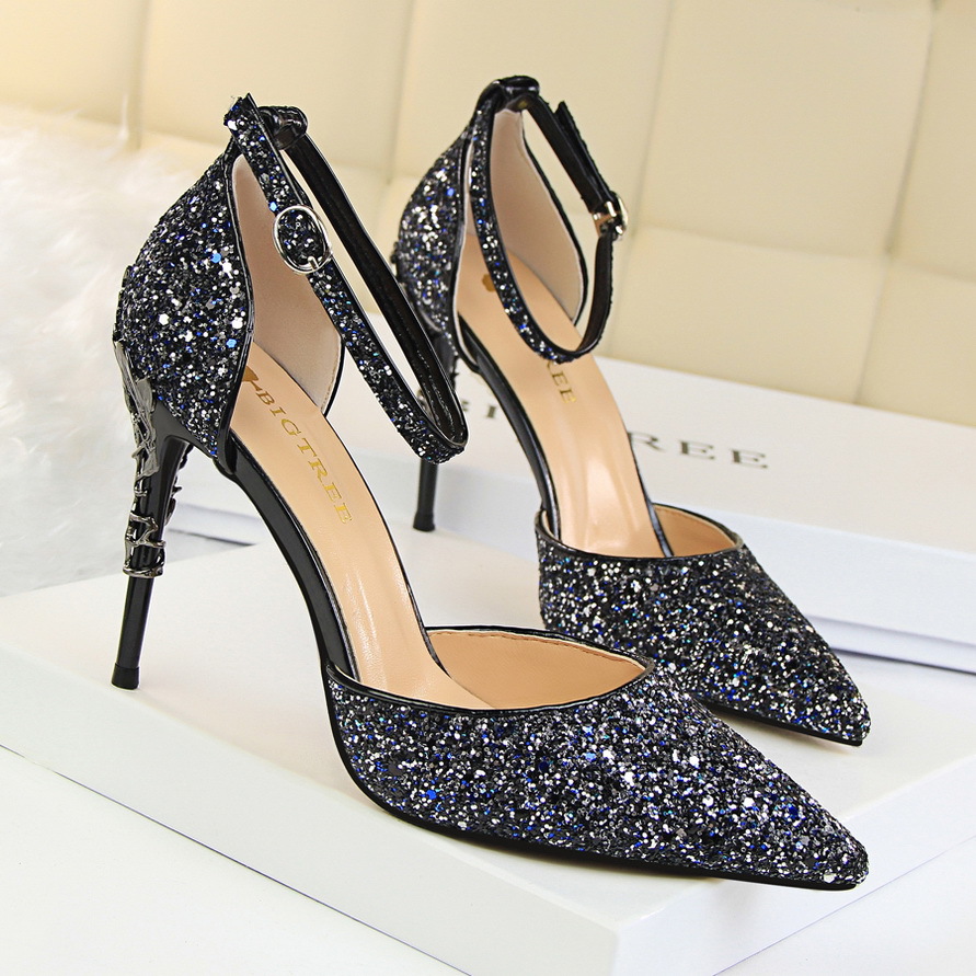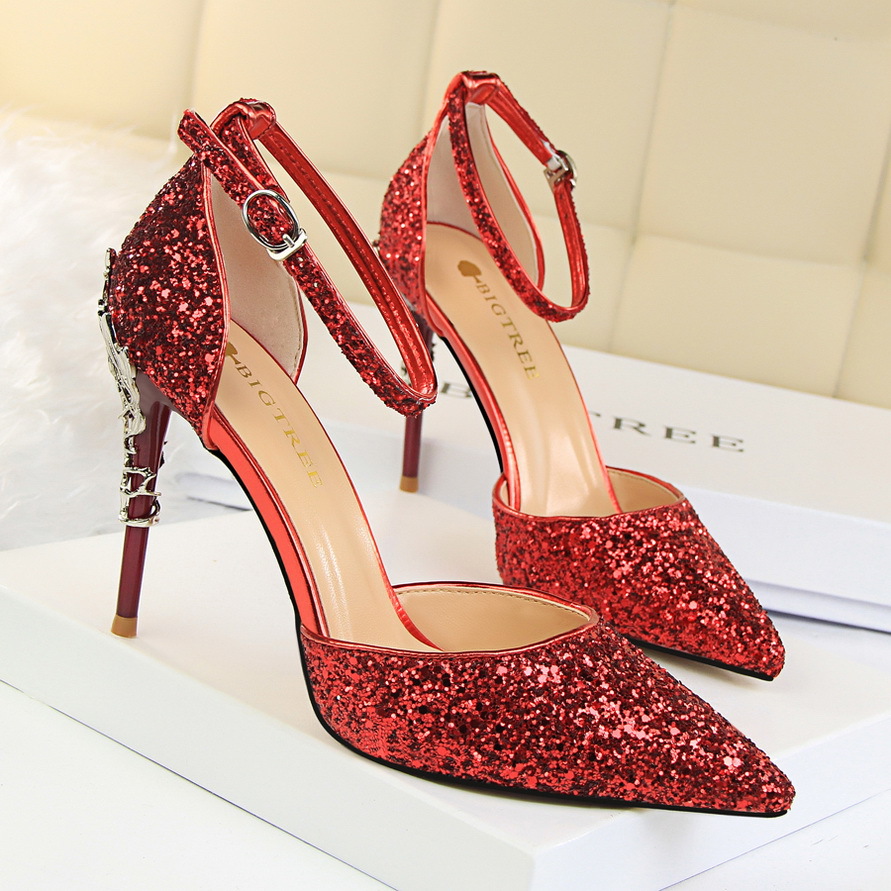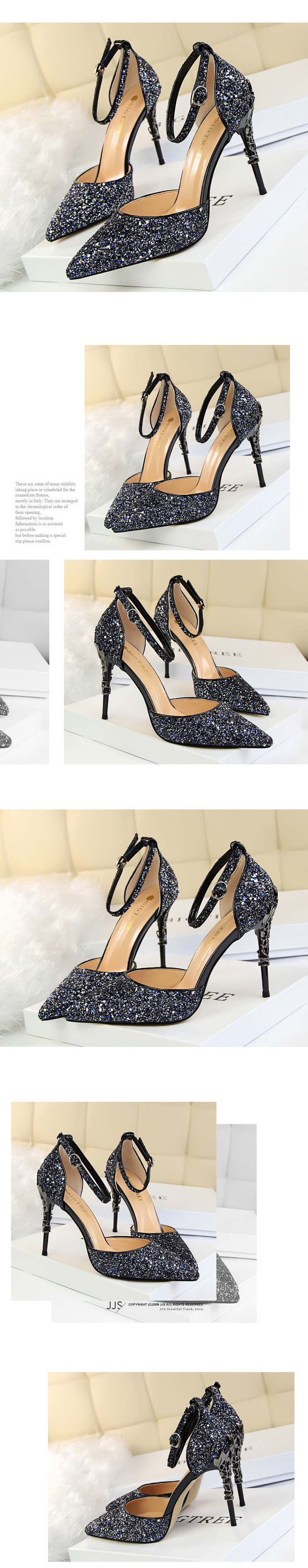 Đôi giày cao gót này mang phong cách phương Tây hiện đại, phù hợp cho các buổi tiệc tối. Dáng giày thiết kế kiểu quai ngang cùng phần gót làm từ kim loại bóng bẩy, tạo điểm nhấn nổi bật. Thân giày điểm xuyết những chi tiết khoét lưới tinh tế và được phủ lớp vảy óng ánh, giúp tôn dáng đôi chân. Khi sử dụng, chỉ cần quai ngang ôm vừa vặn vào mu bàn chân, gót cao vừa phải giúp bạn di chuyển thoải mái mà vẫn giữ được vẻ thanh thoát. | Tên sản phẩm: Giày Cao Gót Nữ Phong Cách Âu Mỹ - Giày Dép Nữ | Mã sản phẩm: M7226 - Giá: 680.000đ | Mã nhà sản xuất: PITYIN-G02Hình ảnh sản phẩm