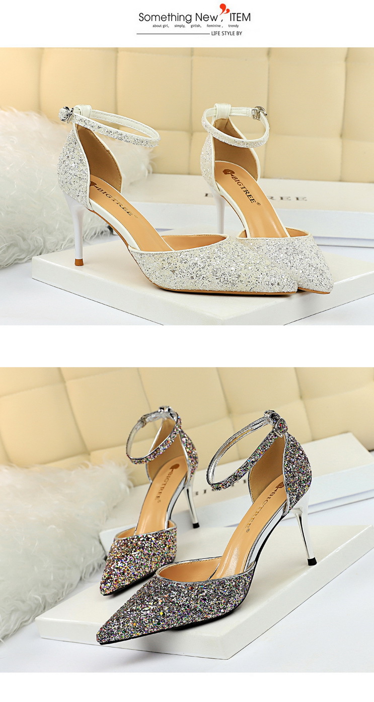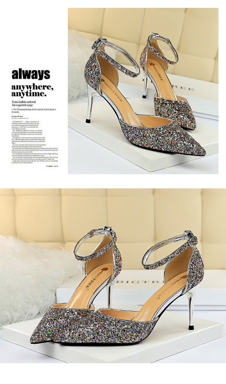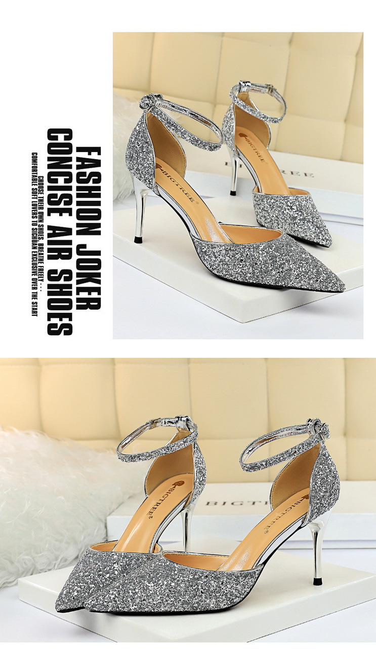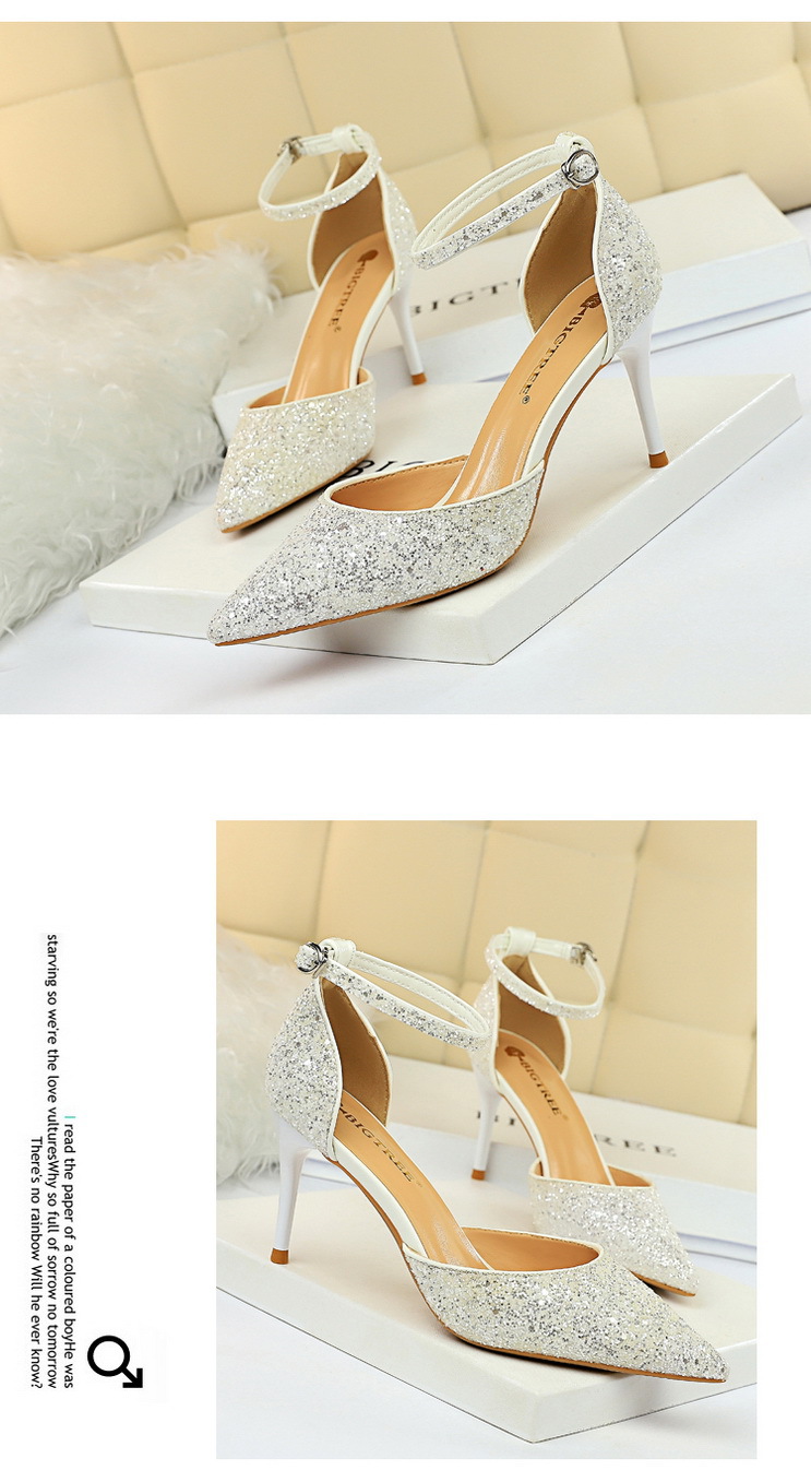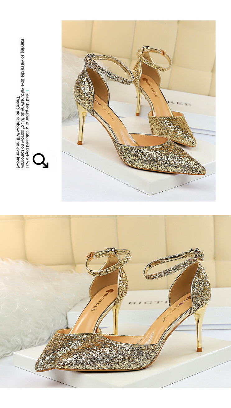 Đôi giày này có phần mũi nhọn và gót kim loại mảnh, tạo dáng thanh thoát. Phần thân giày là kiểu dáng hở mũi và thiết kế dây ngang cổ chân, điểm nhấn là các chi tiết óng ánh phủ khắp thân. Kiểu dáng phù hợp để đi chơi buổi tối hoặc đến các buổi tiệc. Cách sử dụng rất đơn giản, bạn chỉ cần quàng dây qua cổ chân và cài khóa lại là đã có một phụ kiện thời trang hoàn chỉnh. | Tên sản phẩm: Giày Cao Gót Nữ Mũi Nhọn Gót Nhọn Phong Cách Âu Mỹ - Giày Dép Nữ | Mã sản phẩm: M7994 - Giá: 590.000đ | Mã nhà sản xuất: PITYIN-G01Hình ảnh sản phẩm