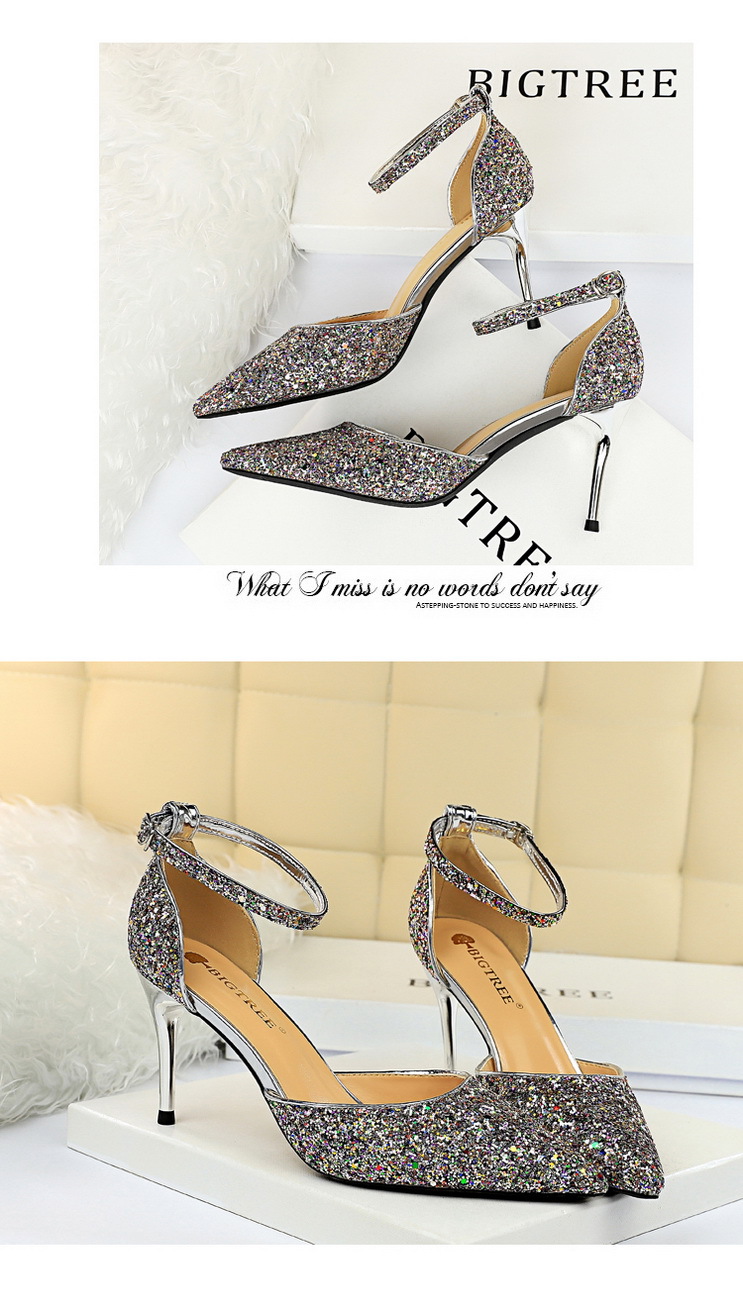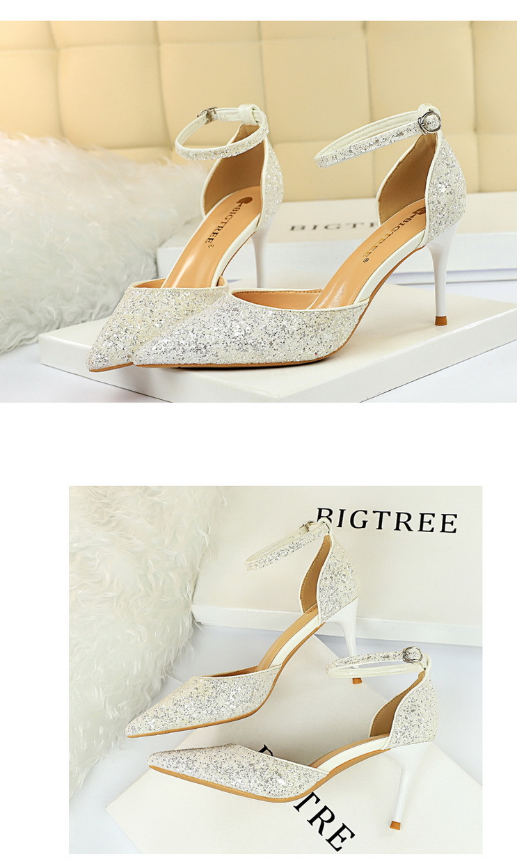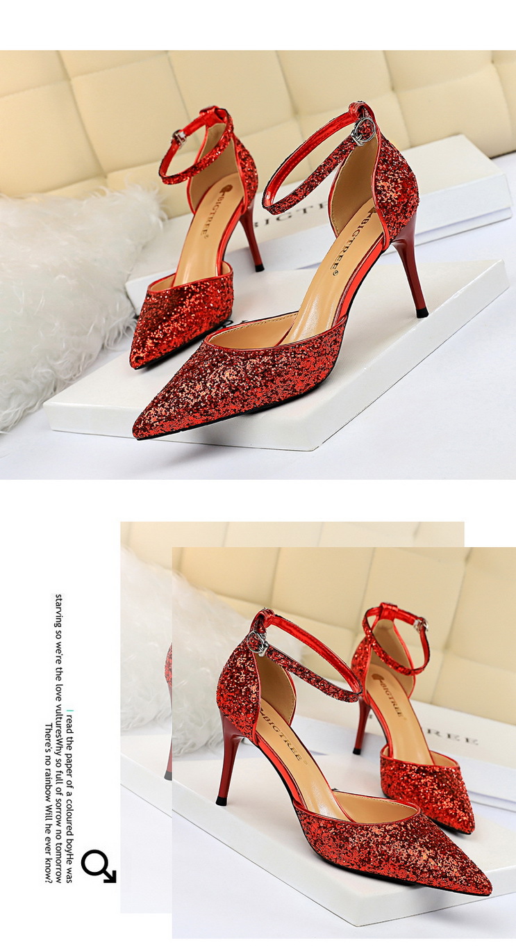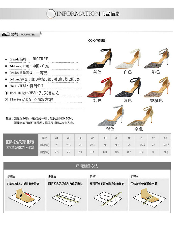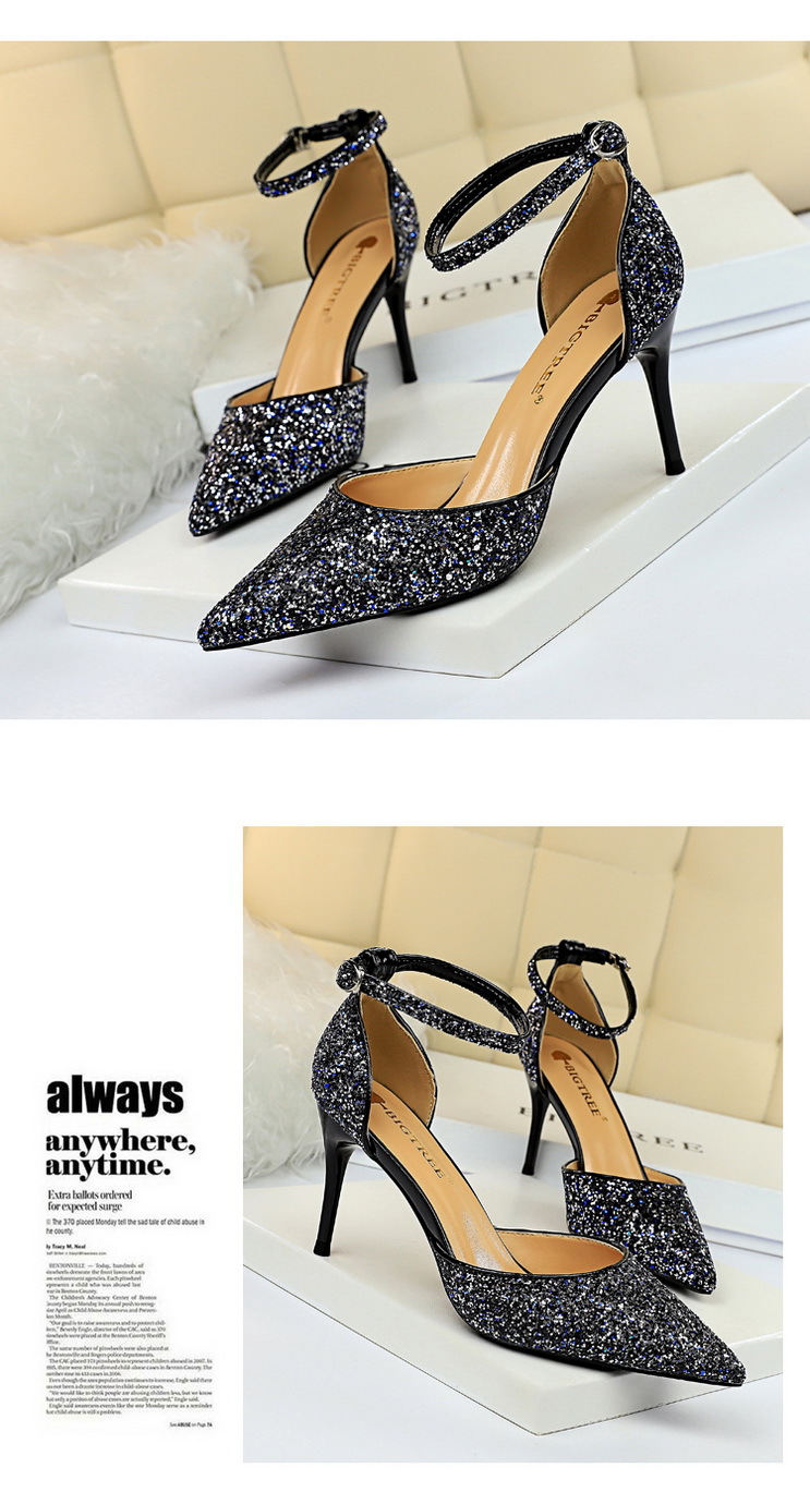Đôi giày này có phần mũi nhọn và gót kim loại mảnh, tạo dáng thanh thoát. Phần thân giày là kiểu dáng hở mũi và thiết kế dây ngang cổ chân, điểm nhấn là các chi tiết óng ánh phủ khắp thân. Kiểu dáng phù hợp để đi chơi buổi tối hoặc đến các buổi tiệc. Cách sử dụng rất đơn giản, bạn chỉ cần quàng dây qua cổ chân và cài khóa lại là đã có một phụ kiện thời trang hoàn chỉnh. | Tên sản phẩm: Giày Cao Gót Nữ Mũi Nhọn Gót Nhọn Phong Cách Âu Mỹ - Giày Dép Nữ | Mã sản phẩm: M7994 - Giá: 590.000đ | Mã nhà sản xuất: PITYIN-G01Hình ảnh sản phẩm