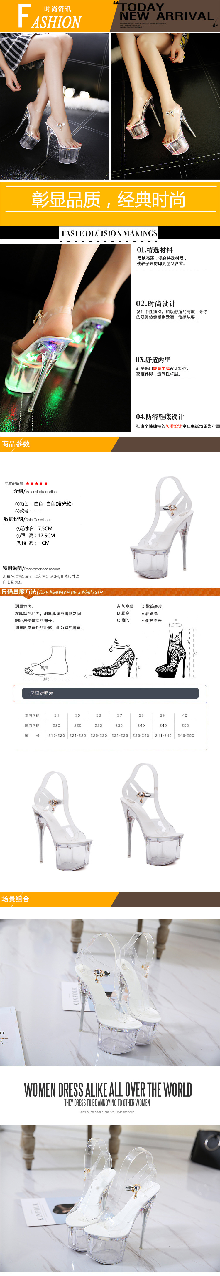 Đôi giày cao gót này có phần đế được làm từ chất liệu trong suốt lấp lánh như pha lê. Đặc điểm nổi bật là khả năng phát sáng, tạo điểm nhấn thu hút trong không gian thiếu sáng. Kiểu dáng phù hợp cho các buổi biểu diễn hoặc tiệc tùng, với thiết kế gót rất cao mang đến dáng đứng vững vàng. Bạn chỉ cần xỏ chân vào, điều chỉnh qu cho vừa vặn và sử dụng như giày thông thường. Sản phẩm có nhiều cỡ từ nhỏ đến lớn để lựa chọn. | Tên sản phẩm: Giày Cao Gót Nữ - Giày Dép Nữ | Mã sản phẩm: M9129 - Giá: 940.000đ | Mã nhà sản xuất: JIENNG-G03Hình ảnh sản phẩm