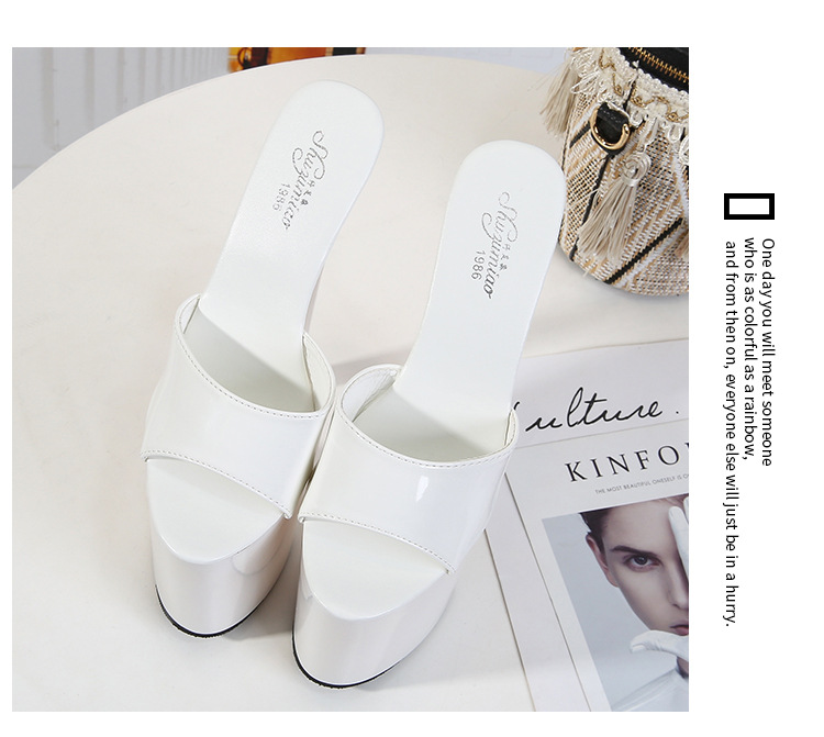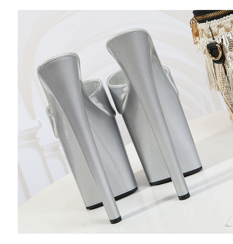 Đôi dép qu hờ dành cho nữ có phần đế được làm dày, hỗ trợ tăng chiều cao đáng kể lên đến mười bảy phân. Sản phẩm sử dụng chất liệu da bóng, tạo vẻ ngoài bắt mắt. Phần gót được thiết kế nhỏ và thanh, kiểu dáng phù hợp cho mùa hè. Khi sử dụng, bạn chỉ cần xỏ chân vào và giữ thăng bằng cẩn thận trên các bề mặt. | Tên sản phẩm: Giày Dép Lê Nữ Cao 17cm Gót Nhọn Hàng Mùa Hè - Giày Dép Nữ | Mã sản phẩm: M9227 - Giá: 990.000đ | Mã nhà sản xuất: JIENNG-G03Hình ảnh sản phẩm