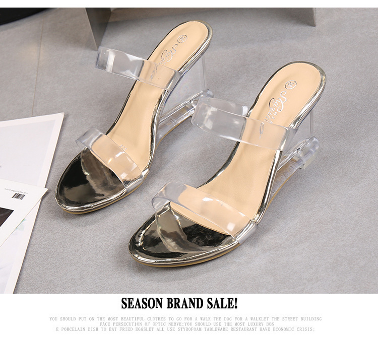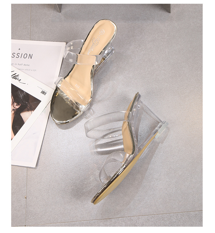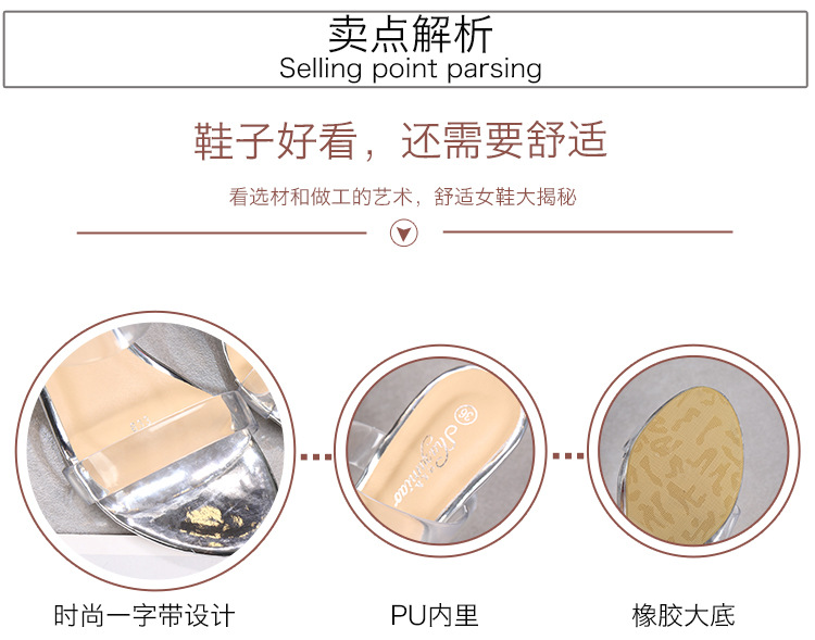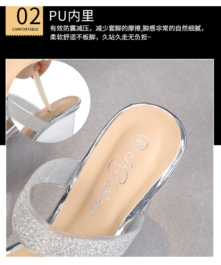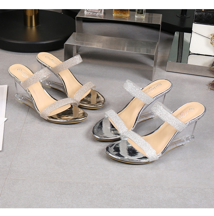 Đôi dép quai ngang dành cho nữ với phần đế được thiết kế dạng nâng nhẹ tạo dáng thanh thoát. Sản phẩm có phần qu trong suốt lấp lánh điểm xuyết như pha lê, mang đến vẻ đẹp tinh tế và hiện đại. Kiểu dáng phù hợp để diện trong mùa hè, dễ dàng phối cùng nhiều loại trang phục khác nhau. Khi sử dụng, chỉ cần xỏ chân vào và điều chỉnh qu cho vừa vặn và thoải mái. | Tên sản phẩm: Giày Cao Gót Nữ Đế Xuồng Hàng Mùa Hè - Giày Dép Nữ | Mã sản phẩm: M9229 - Giá: 700.000đ | Mã nhà sản xuất: JIENNG-G02Hình ảnh sản phẩm