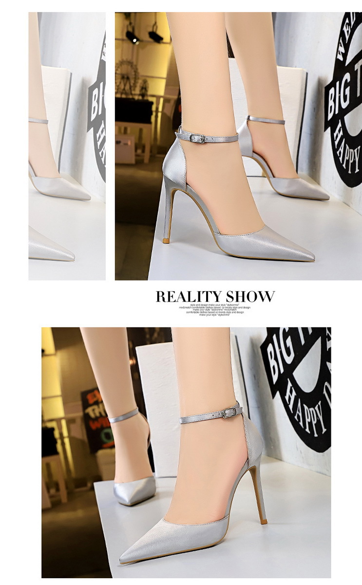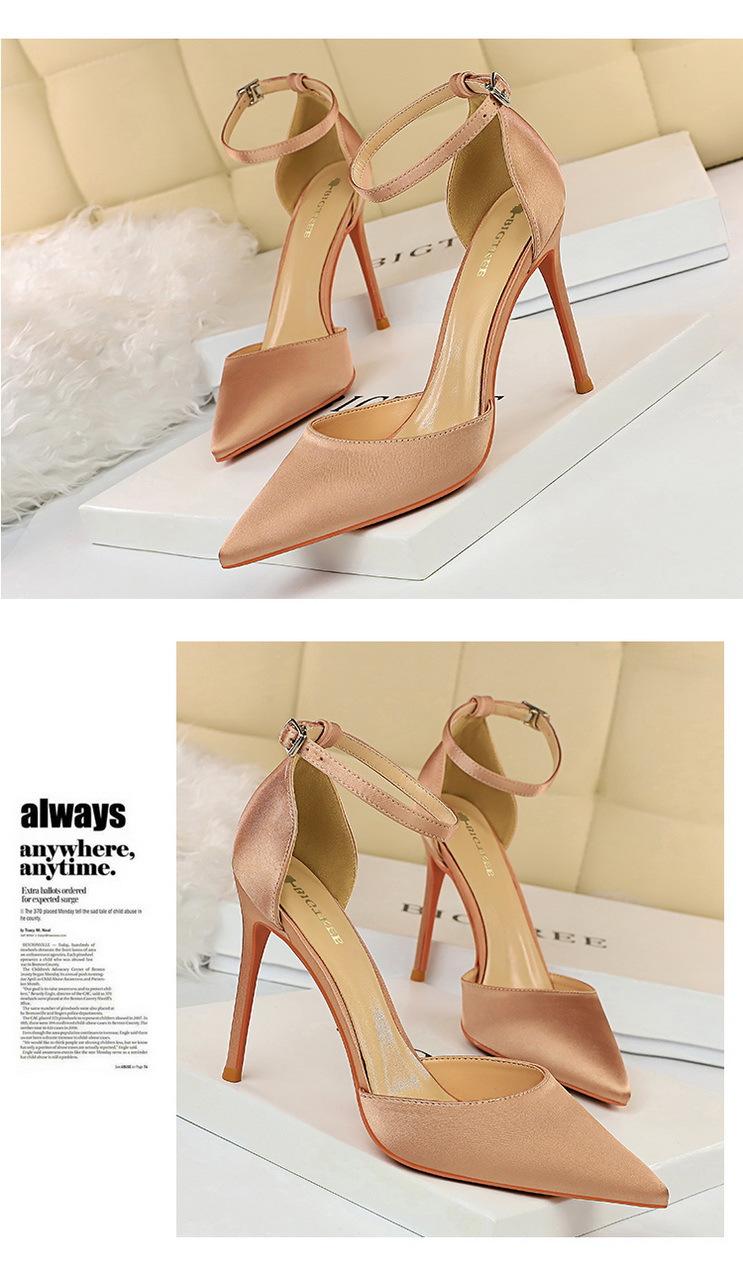 Đôi giày này có kiểu dáng đơn giản và hiện đại. Phần mũi giày nhọn và gót cao tạo dáng thanh thoát. Chất liệu vải lụa mềm mại kết hợp cùng thiết kế khoét hở ở thân và mu bàn chân, tạo điểm nhấn tinh tế. Dây đeo chữ T ôm sát giúp cố định chân. Bạn có thể dễ dàng phối cùng nhiều trang phục để đi chơi, dự tiệc hoặc những buổi tối. | Tên sản phẩm: Giày Cao Gót Nữ Mũi Nhọn Phong Cách Âu Mỹ - Giày Dép Nữ | Mã sản phẩm: N9782 - Giá: 590.000đ | Mã nhà sản xuất: PITYIN-G01Hình ảnh sản phẩm
