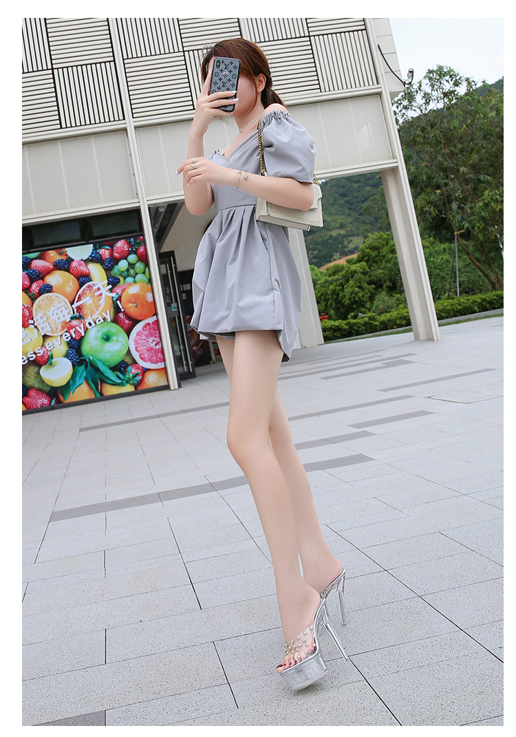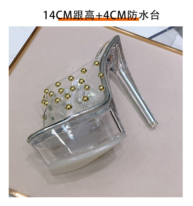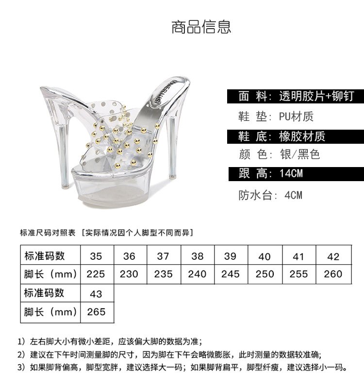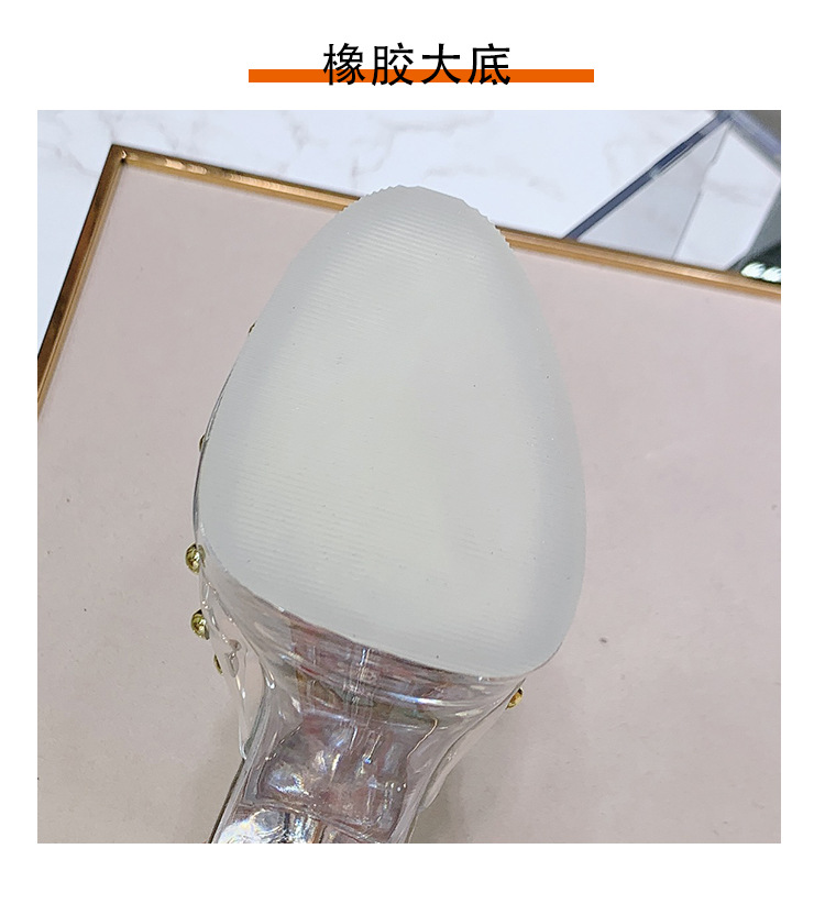 Đôi giày cao gót này có phần đế được thiết kế dày hơn một chút ở phía trước, giúp tăng thêm sự thoải mái khi di chuyển. Phong cách mang nét thanh lịch, nhẹ nhàng, với phần mũi giày hở tạo vẻ quyến rũ. Chất liệu trong suốt kết hợp cùng các điểm nhấn bằng đinh tán kim loại, mang đến vẻ ngoài thời thượng. Sản phẩm phù hợp để sử dụng trong nhiều dịp khác nhau, từ dạo phố đến các buổi gặp mặt. Bạn có thể kết hợp cùng nhiều loại trang phục để tạo điểm nhấn cá nhân. | Tên sản phẩm: Giày Dép Lê Nữ Chống Nước Trong Suốt Miệng Cá Hàng Mùa Hè - Giày Dép Nữ | Mã sản phẩm: T5111 - Giá: 720.000đ | Mã nhà sản xuất: MATYAL-G02Hình ảnh sản phẩm