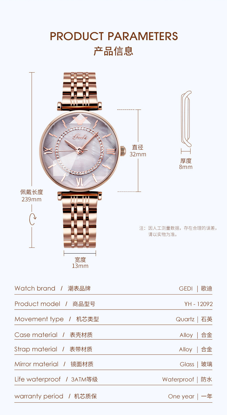 Chiếc đồng hồ dành cho nữ này có thiết kế đơn giản, dễ dàng phối hợp với nhiều loại trang phục khác nhau. Sản phẩm sử dụng dây đeo bằng thép không gỉ, tạo cảm giác chắc chắn và sáng bóng. Đây là loại đồng hồ chạy bằng pin, hiển thị thời gian rõ ràng. Bạn có thể đeo hằng ngày, phù hợp cho nhiều hoàn cảnh sử dụng. Cách dùng rất đơn giản, chỉ cần đeo vào tay và điều chỉnh độ rộng của dây cho vừa vặn. | Tên sản phẩm: Đồng Hồ Nữ Máy Pin, Máy Thạch Anh Quai Hợp Kim - Đồng Hồ Phụ Kiện Nữ | Mã sản phẩm: T8761 - Giá: 670.000đ | Mã nhà sản xuất: FODI-G02Hình ảnh sản phẩm