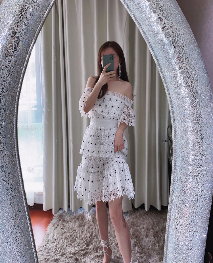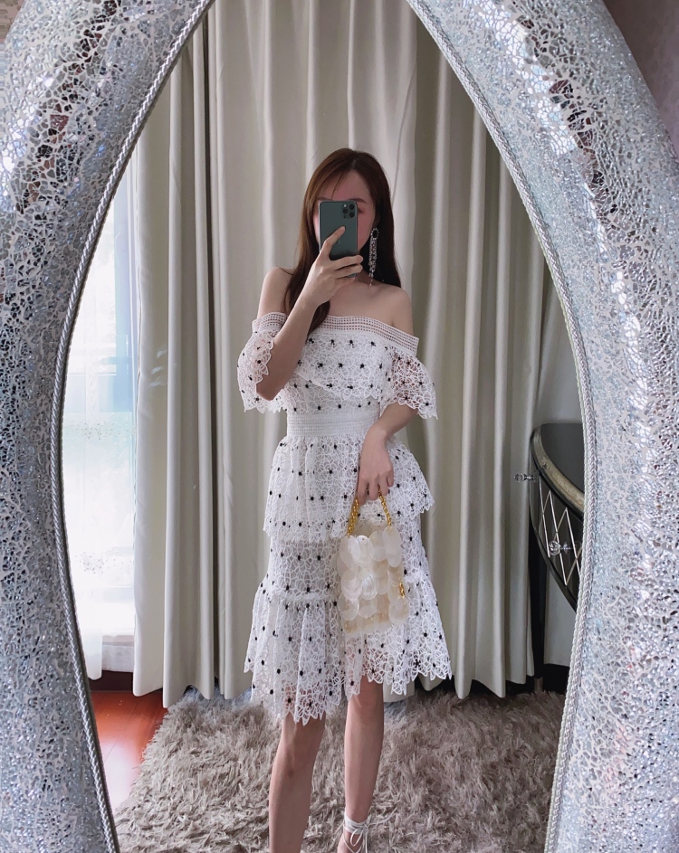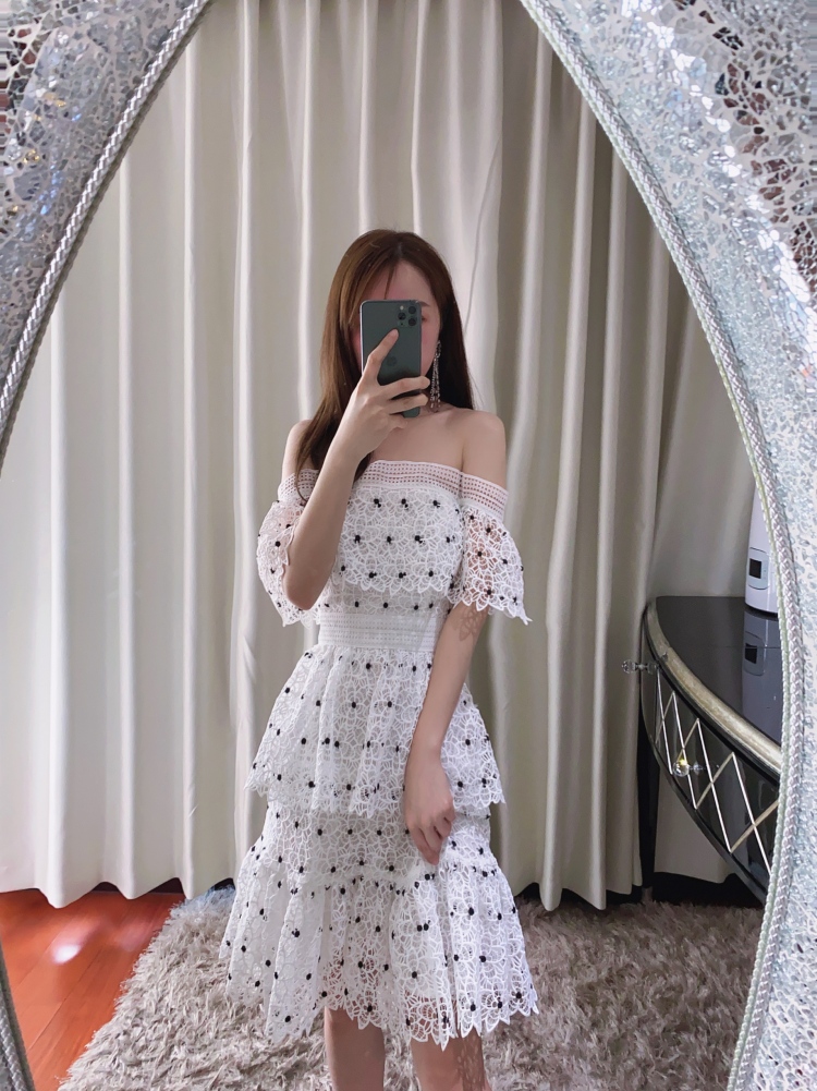 Đầm thiết kế cổ chữ U phô bày bờ v gợi cảm. Chất vải dày dặn kết hợp họa tiết ren thủ công tinh xảo, tạo nên vẻ đẹp nữ tính. Form đầm ôm dáng với điểm nhấn là những chấm bi trắng trên nền vải, giúp tôn lên những đường nét cơ thể. Sản phẩm phù hợp cho những buổi gặp mặt hoặc dạo phố. Mặc cùng giày sandal và túi xách tay để hoàn thiện phong cách. | Tên sản phẩm: Váy Đầm Liền Thân Nữ Chất Liệu Ren Hàng Mùa Hè - Thời Trang Nữ | Mã sản phẩm: T9420 - Giá: 1.640.000đ | Mã nhà sản xuất: HADN-G05Hình ảnh sản phẩm