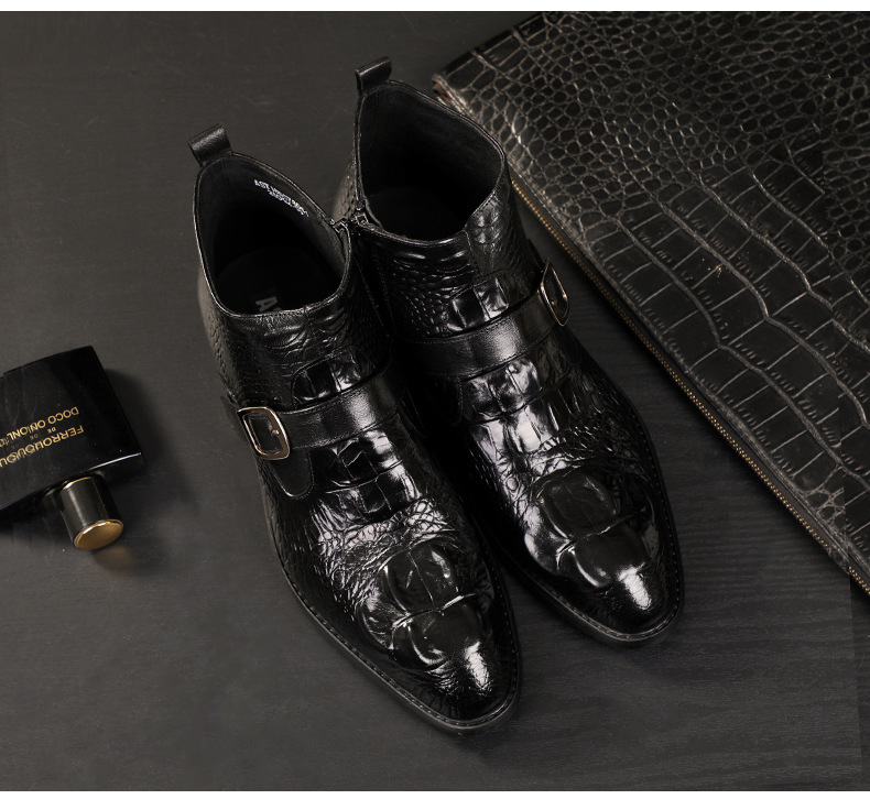 Giày boot nam thiết kế cổ cao, phù hợp cho nhiều dịp sử dụng. Sản phẩm có đường may tinh tế và mặt ngoài được tạo hình vân da cá sấu, mang đến vẻ ngoài mạnh mẽ. Phần mũi giày nhọn, tôn dáng người đi. Sử dụng khóa kéo bên hông giúp việc mang vào và tháo ra dễ dàng. Có thể kết hợp linh hoạt với quần jeans hoặc quần âu để tạo nên những phong cách khác nhau. | Tên sản phẩm: Giày Da Nam Chất Liệu Da Bò Vân Da Cá Sấu Mũi Nhọn - Giày Dép Nam | Mã sản phẩm: A0009 - Giá: 2.690.000đ | Mã nhà sản xuất: SHRYIC-G06Hình ảnh sản phẩm