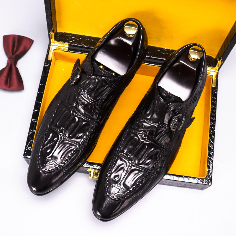 Giày tây nam thiết kế kiểu dáng phù hợp cho môi trường công sở. Sản phẩm được làm từ chất liệu da thật tự nhiên, bề mặt có đường vân đặc trưng tạo điểm nhấn. Phần mũi giày nhọn và hệ thống khóa móc kim loại giúp việc mang vào tháo ra dễ dàng và giữ chân chắc chắn. Kiểu dáng mang phong cách cổ điển, phối hợp cùng nhiều loại trang phục khác nhau như quần âu hay veston. Sử dụng hàng ngày và vệ sinh bằng khăn mềm để giữ giày luôn bền đẹp. | Tên sản phẩm: Giày Da Nam Chất Liệu Da Bò Vân Da Cá Sấu Mũi Nhọn - Giày Dép Nam | Mã sản phẩm: A0011 - Giá: 2.120.000đ | Mã nhà sản xuất: SHRYIC-G05Hình ảnh sản phẩm