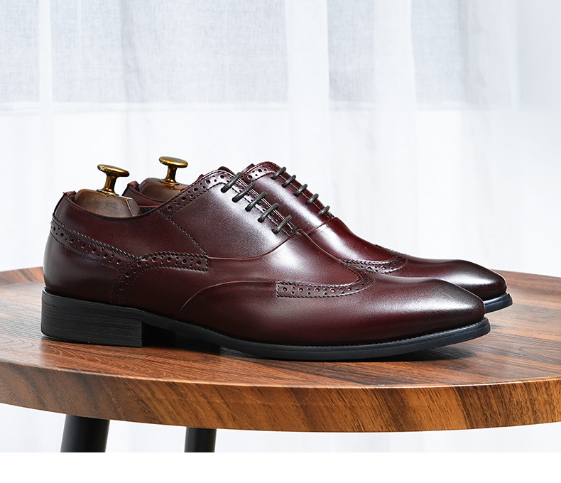 Đôi giày da này mang phong cách Anh cổ điển với những đường hoa văn tinh tế được khắc trên thân giày. Thiết kế mũi tròn tạo cảm giác thoải mái và phù hợp cho môi trường công sở hoặc những dịp cần trang phục chỉn chu. Sản phẩm có đa dạng kích cỡ để lựa chọn. Bạn chỉ cần vệ sinh nhẹ nhàng bằng vải mềm và bảo quản nơi khô ráo để sử dụng được lâu dài. | Tên sản phẩm: Giày Da Nam Big Size Ngoại Cỡ Mũi Tròn Họa Tiết Hoa - Giày Dép Nam | Mã sản phẩm: A0022 - Giá: 1.920.000đ | Mã nhà sản xuất: SHRYIC-G05Hình ảnh sản phẩm