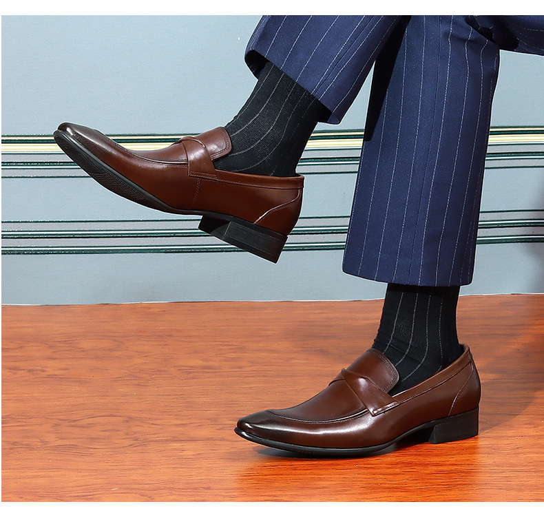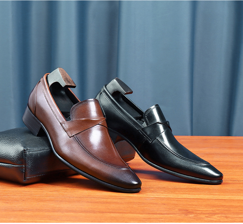 Giày tây dáng ôm gọn, phần mũi nhọn tạo nét lịch sự. Sản phẩm được làm từ chất liệu da thật, mang lại cảm giác thoải mái khi sử dụng. Kiểu dáng cổ điển phù hợp cho cả công sở và những dịp gặp mặt thông thường. Thiết kế không cần buộc dây, mang vào rất tiện lợi và nhanh chóng. Bạn có thể dùng hàng ngày, dễ dàng phối cùng nhiều loại trang phục khác nhau. | Tên sản phẩm: Giày Da Nam Chất Liệu Da Bò Mũi Nhọn - Giày Dép Nam | Mã sản phẩm: A0026 - Giá: 2.120.000đ | Mã nhà sản xuất: SHRYIC-G05Hình ảnh sản phẩm