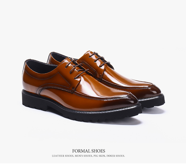 Giày da thật dành cho nam, kiểu dáng công sử thanh lịch. Sản phẩm có phần đế được thiết kế dày hơn một cách tinh tế, giúp tăng chiều cao nhẹ nhàng khi di chuyển. Bề mặt giày được đánh bóng tạo vẻ ngoài gọn gàng, phù hợp với nhiều loại trang phục đi làm. Bạn có thể dùng giày để đi làm mỗi ngày, kết hợp cùng quần âu hoặc veston. Chất liệu da mềm mại mang lại cảm giác dễ chịu cho đôi chân suốt cả ngày dài. | Tên sản phẩm: Giày Da Nam Chất Liệu Da Bò Tăng Chiều Cao Đế Cao - Giày Dép Nam | Mã sản phẩm: A0043 - Giá: 2.310.000đ | Mã nhà sản xuất: SHRYIC-G05Hình ảnh sản phẩm