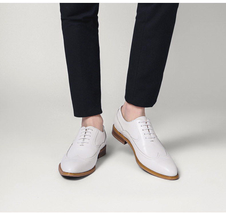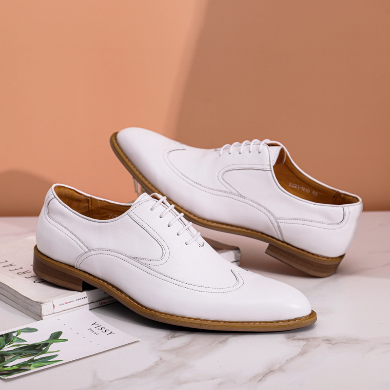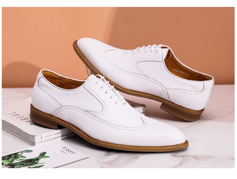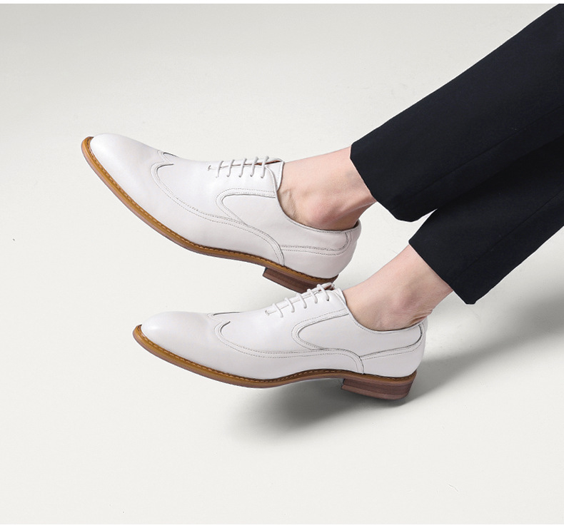Giày da bò này mang phong cách Anh nhã nhặn, phù hợp cho nhiều dịp như đi làm, dự tiệc cưới hay dạo phố cuối tuần. Chất da mềm và lớp lót thoáng khí giúp đôi chân dễ chịu cả ngày dài. Kiểu dáng thanh lịch với màu trắng tinh tế, dễ dàng phối cùng vest chỉn chu hay quần âu thông thường. Chỉ cần lau sạch bụi và bảo quản nơi khô ráo để giày luôn bền đẹp. | Tên sản phẩm: Giày Da Nam Chất Liệu Da Bò Thoáng Khí Dùng Trong Lễ Cưới Ngày Cưới - Giày Dép Nam | Mã sản phẩm: A0044 - Giá: 2.120.000đ | Mã nhà sản xuất: SHRYIC-G05Hình ảnh sản phẩm