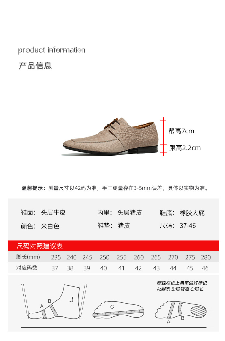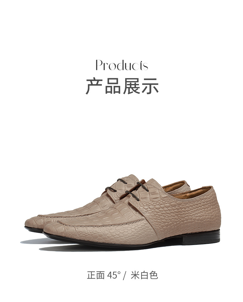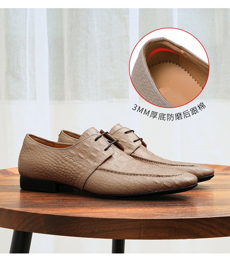 Giày da dành cho nam giới, được làm từ chất liệu da thật với kiểu dáng vân da cá sấu tinh tế. Mẫu giày này có mặt mềm mại, ôm chân và mang phong cách châu Âu hiện đại. Rất phù hợp để mang trong các dịp quan trọng như tiệc cưới hoặc làm việc tại môi trường công sở. Bạn có thể kết hợp cùng bộ vest chỉnh tề hoặc quần âu để tạo nên vẻ ngoại hình lịch lãm. | Tên sản phẩm: Giày Da Nam Chất Liệu Da Bò Vân Da Cá Sấu Dùng Trong Lễ Cưới - Giày Dép Nam | Mã sản phẩm: A0045 - Giá: 2.160.000đ | Mã nhà sản xuất: SHRYIC-G05Hình ảnh sản phẩm