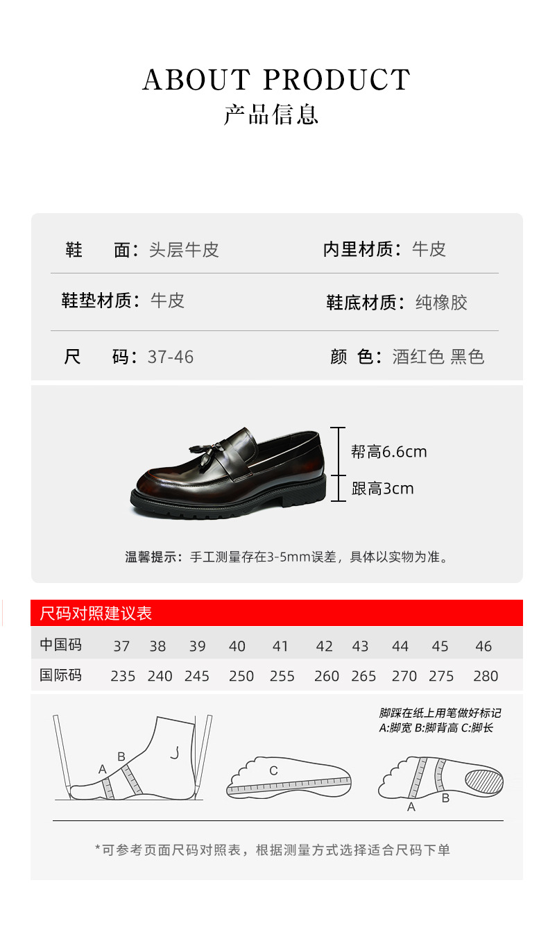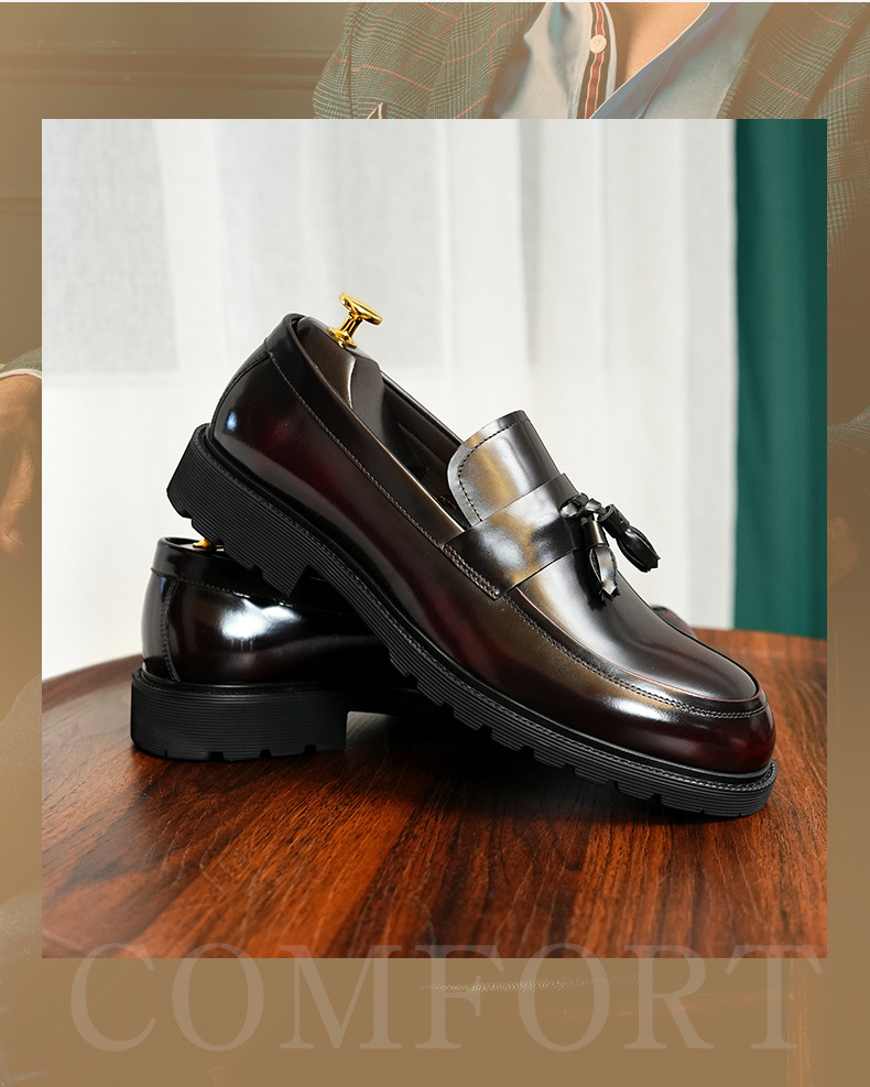 Giày tây nam thiết kế kiểu dáng đi làm thanh lịch, phù hợp nhiều dịp. Sản phẩm làm từ chất liệu da thật bền đẹp, bề mặt có độ bóng nhẹ. Điểm nhấn là phần tua rũ mềm mại ở mặt trên, tăng thêm nét phóng khoáng. Đế giày được làm dày dặn, giúp nâng đỡ tốt và đi lại thoải mái cả ngày. Bạn chỉ cần xỏ chân vào là có thể sử dụng ngay, rất thuận tiện. | Tên sản phẩm: Giày Da Nam Chất Liệu Da Bò Đế Cao - Giày Dép Nam | Mã sản phẩm: A0058 - Giá: 2.310.000đ | Mã nhà sản xuất: SHRYIC-G05Hình ảnh sản phẩm
