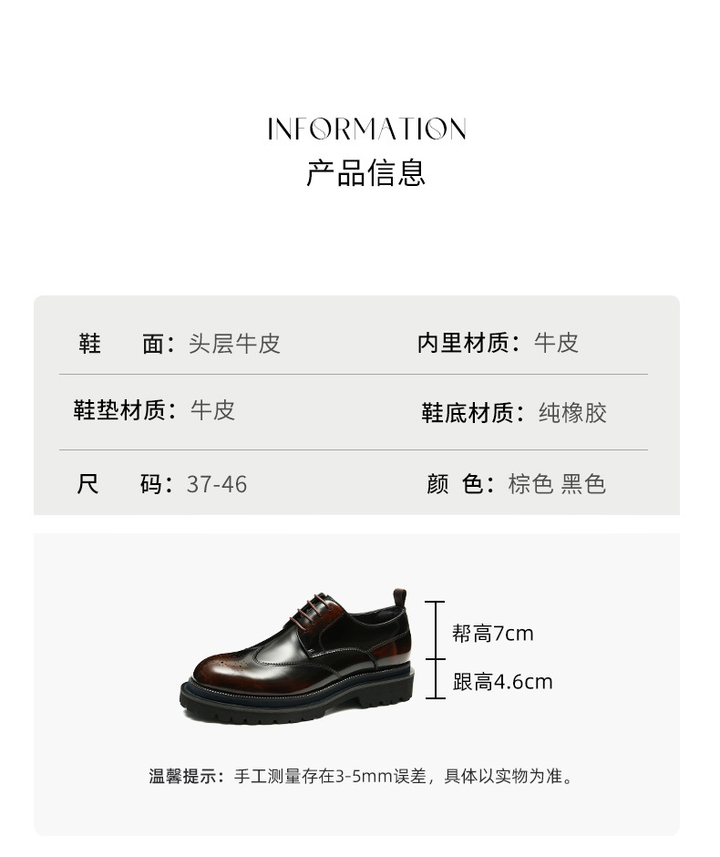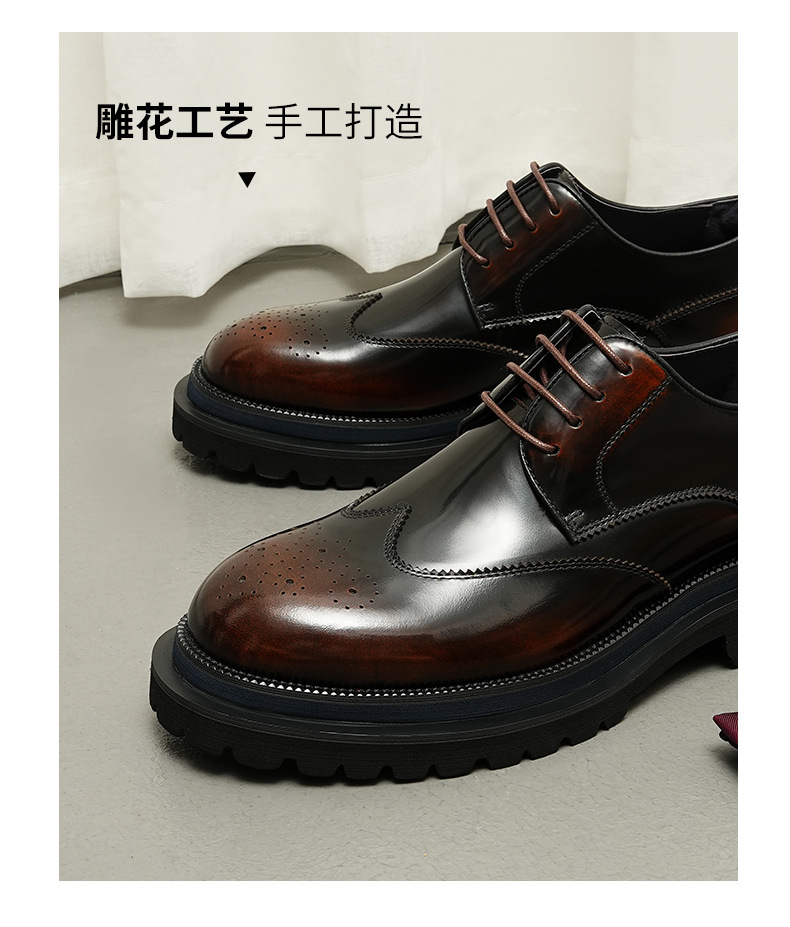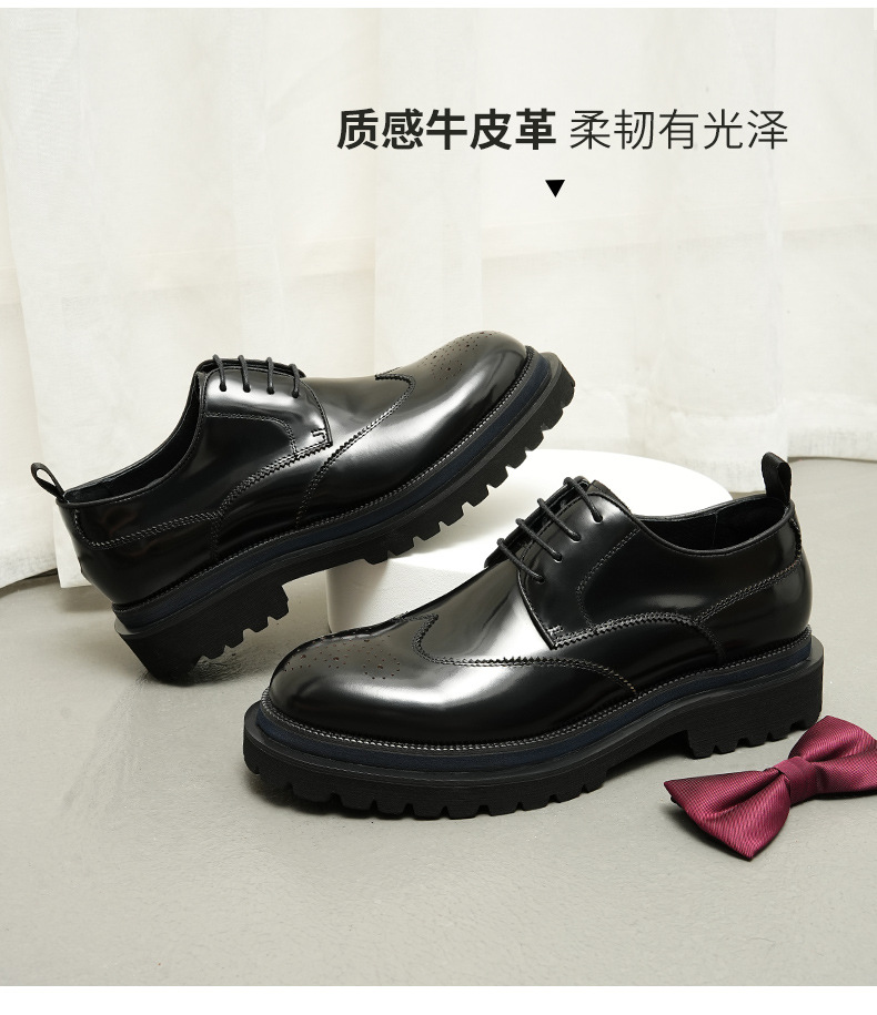 Giày nam phong cách Anh Quốc với phần đế được thiết kế dày một cách tinh tế, giúp tăng chiều cao nhẹ nhàng. Sản phẩm được làm từ chất liệu da thật, mang lại cảm giác thoải mái và bền lâu. Mũi giày nhọn cùng các đường nét chạm khắc tinh xảo tạo nên vẻ lịch sự, phù hợp cho công sở hoặc những dịp cần trang phục chỉn chu. Dễ dàng phối cùng quần âu để hoàn thiện bộ trang phục. | Tên sản phẩm: Giày Da Nam Chất Liệu Da Bò Mũi Nhọn Họa Tiết Hoa Đế Cao - Giày Dép Nam | Mã sản phẩm: A0065 - Giá: 2.450.000đ | Mã nhà sản xuất: SHRYIC-G05Hình ảnh sản phẩm