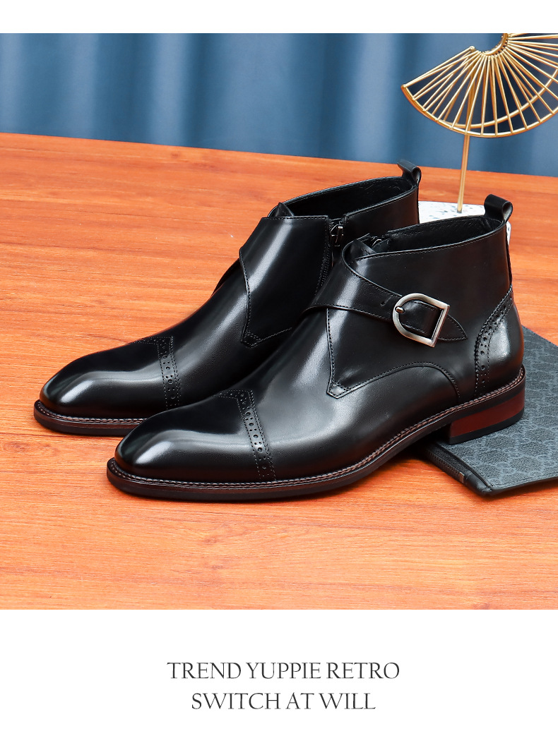Giày boot da thật dành cho nam, thiết kế cổ cao mang phong cách Anh Quốc lịch sự. Sản phẩm có đường kéo hai bên giúp mang vào và tháo ra dễ dàng. Kiểu dáng kết hợp giữa nét cổ điển và hiện đại, phù hợp để mặc cùng trang phục công sở hoặc những dịp cần sự chỉn chu. Chỉ cần kéo khóa nhẹ nhàng là đã sẵn sàng để bước đi tự tin và thoải mái cả ngày dài. | Tên sản phẩm: Giày Da Nam Chất Liệu Da Bò Phục Cổ Cổ Điển - Giày Dép Nam | Mã sản phẩm: A0069 - Giá: 2.640.000đ | Mã nhà sản xuất: SHRYIC-G06Hình ảnh sản phẩm