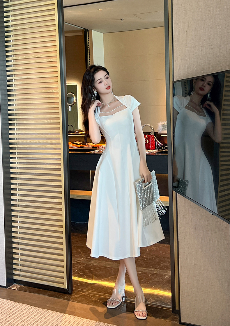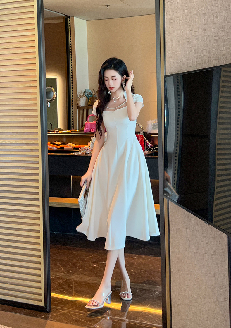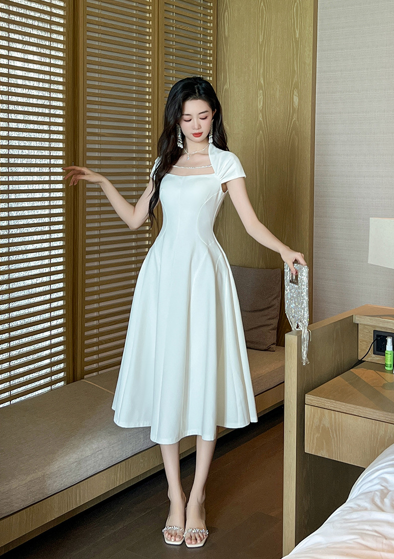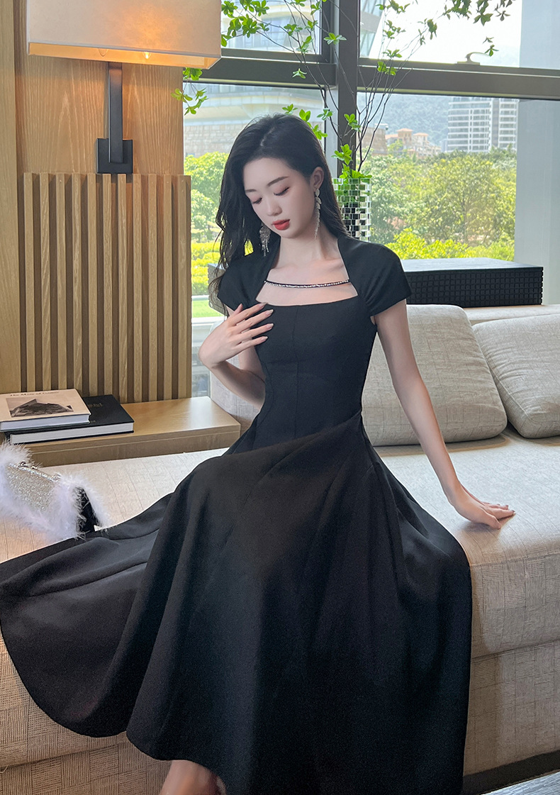 Chiếc đầm dáng dài lấy cảm hứng từ phong cách thời trang cổ điển. Thiết kế cổ vuông thanh lịch, tôn dáng người mặc. Điểm nhấn là eo được bo nhẹ nhàng cùng phần chân váy xòe rộng, tạo dáng chữ A duyên dáng. Chất vải mềm mại, thoáng mát, thích hợp cho mùa hè. Có thể phối cùng giày gót nhẹ và túi xách để hoàn thiện bộ trang phục đi làm hoặc dự tiệc. | Tên sản phẩm: Váy Đầm Liền Thân Dáng Dài Nữ Dáng Chữ A Hàng Mùa Hè - Thời Trang Nữ | Mã sản phẩm: A0082 - Giá: 1.440.000đ | Mã nhà sản xuất: CHDG-G04Hình ảnh sản phẩm
