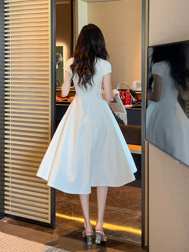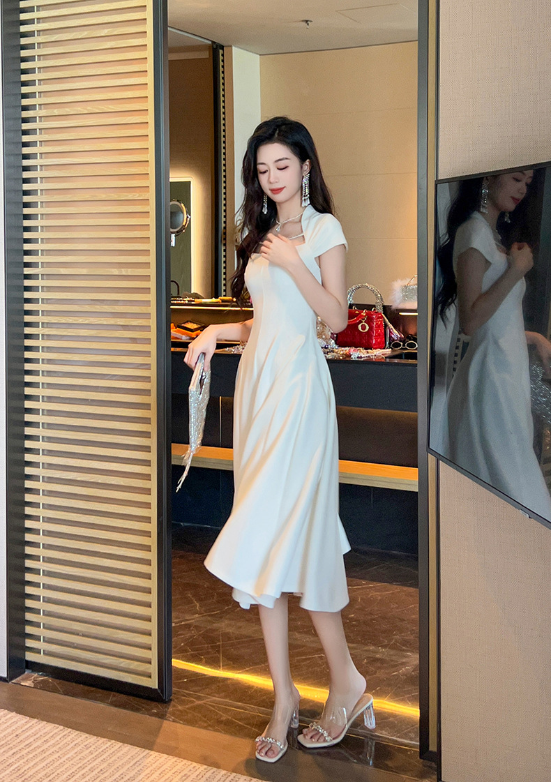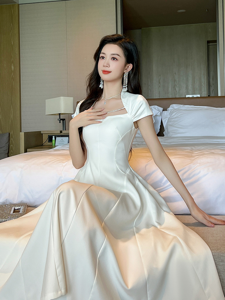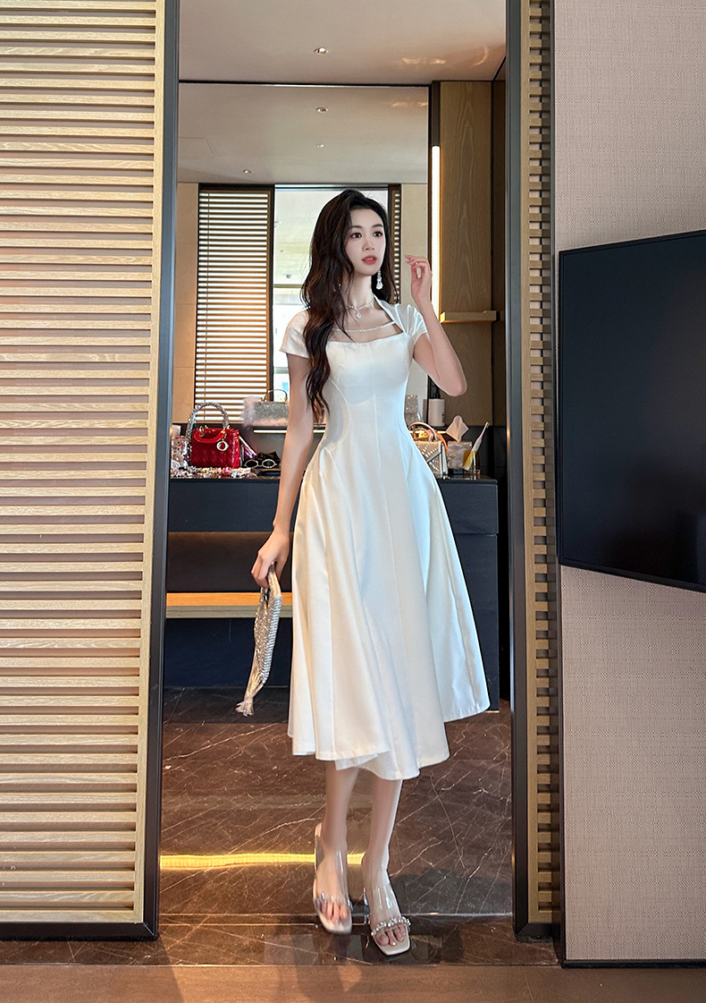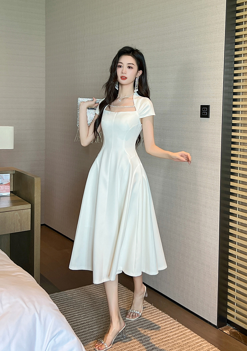 Chiếc đầm dáng dài lấy cảm hứng từ phong cách thời trang cổ điển. Thiết kế cổ vuông thanh lịch, tôn dáng người mặc. Điểm nhấn là eo được bo nhẹ nhàng cùng phần chân váy xòe rộng, tạo dáng chữ A duyên dáng. Chất vải mềm mại, thoáng mát, thích hợp cho mùa hè. Có thể phối cùng giày gót nhẹ và túi xách để hoàn thiện bộ trang phục đi làm hoặc dự tiệc. | Tên sản phẩm: Váy Đầm Liền Thân Dáng Dài Nữ Dáng Chữ A Hàng Mùa Hè - Thời Trang Nữ | Mã sản phẩm: A0082 - Giá: 1.440.000đ | Mã nhà sản xuất: CHDG-G04Hình ảnh sản phẩm