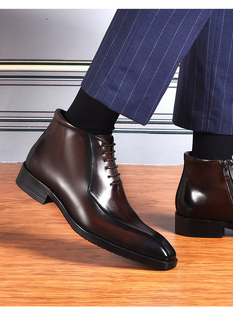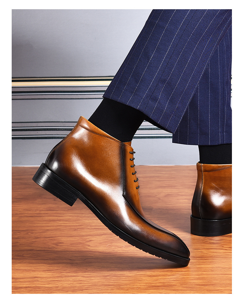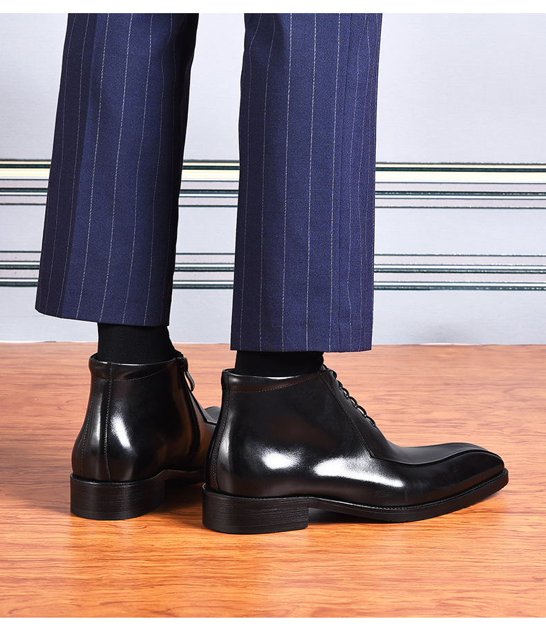 Giày bốt nam thiết kế kiểu dáng Anh quốc, phù hợp cho công sở và dạo phố. Sản phẩm được làm từ chất liệu da thật, phần mũi nhọn tạo vẻ lịch sự. Đế giày chắc chắn, ôm khít chân mang lại sự thoải mái khi di chuyển cả ngày. Có thể kết hợp cùng quần âu hoặc quần jeans để tạo phong cách. Dùng khăn mềm lau sạch bề mặt sau khi sử dụng. | Tên sản phẩm: Boot Cổ Thấp Nam Chất Liệu Da Bò Mũi Nhọn Hàng Mùa Xuân Thu Đông - Giày Dép Nam | Mã sản phẩm: A0086 - Giá: 2.640.000đ | Mã nhà sản xuất: SHRYIC-G06Hình ảnh sản phẩm
