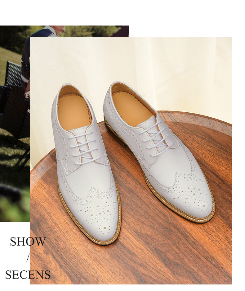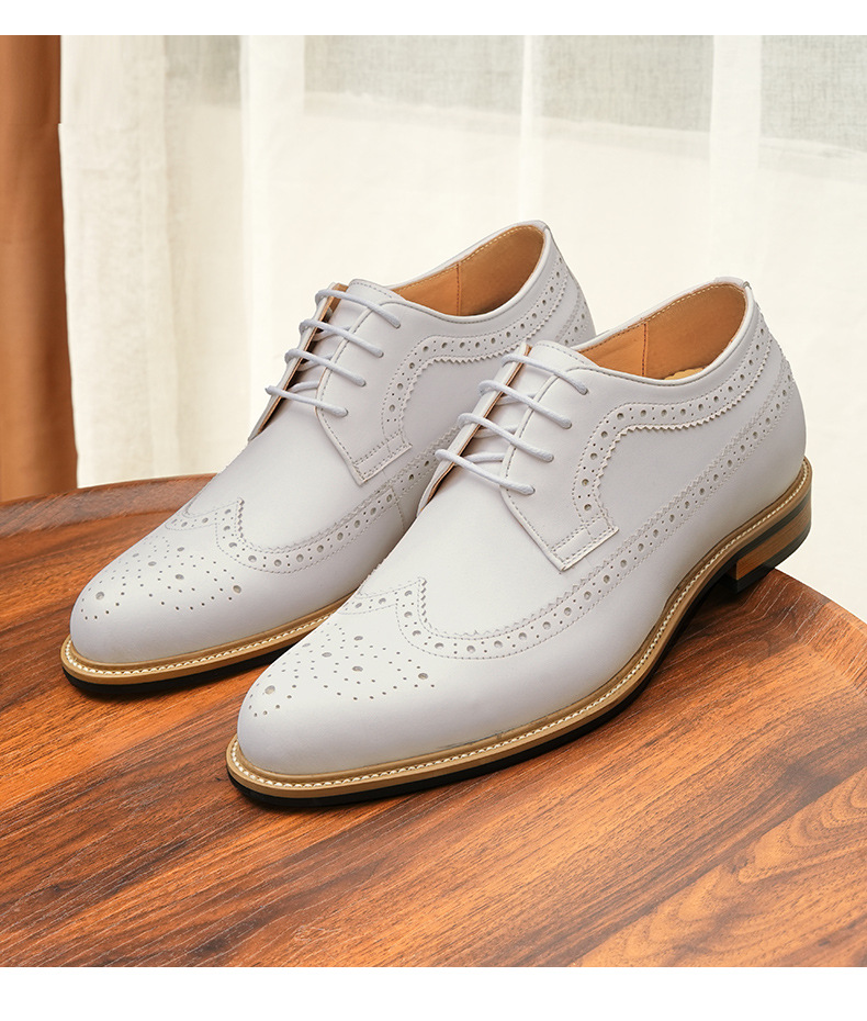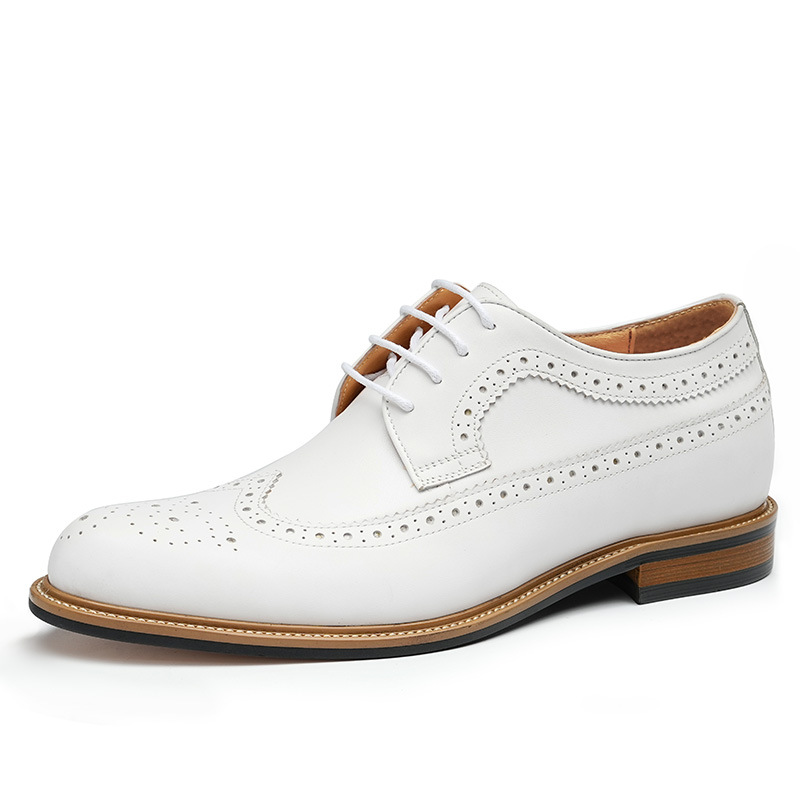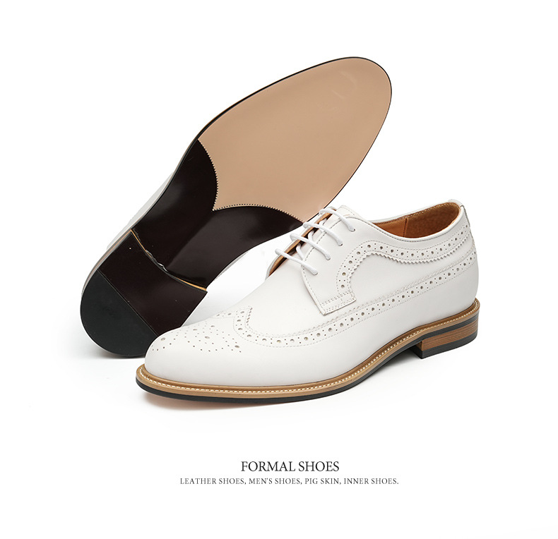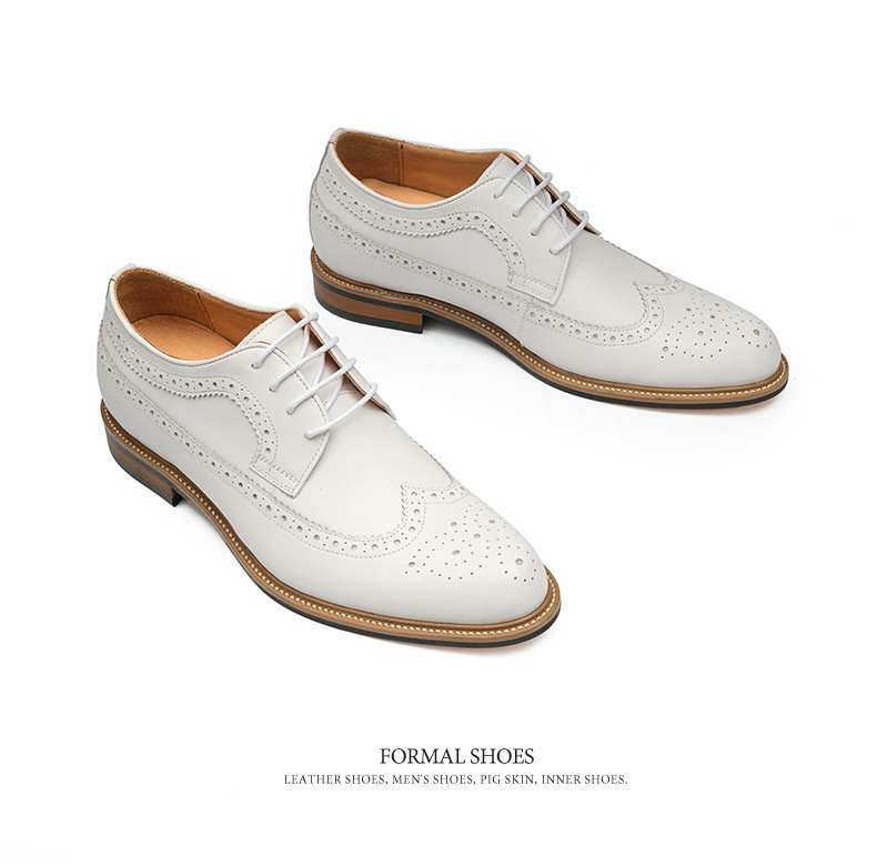 Giày da trắng nam này mang đến vẻ ngoại hình lịch sự và thanh thoát. Sản phẩm được làm từ chất liệu da thật, ôm chân êm ái. Bên trong có đế thiết kế đặc biệt giúp tăng chiều cao một cách kín đáo. Kiểu dáng kết hợp giữa đi làm và dạo phố, với các họa tiết trang trí tinh xảo trên thân giày. Bạn có thể dễ dàng phối cùng vest trong những dịp quan trọng hoặc mặc với quần âu thông thường. Sử dụng bộ vệ sinh giàu da chuyên dụng để giữ giày luôn sáng đẹp. | Tên sản phẩm: Giày Da Nam Chất Liệu Da Bò Họa Tiết Hoa Hàng Mùa Hè Dùng Trong Lễ Cưới Ngày Cưới - Giày Dép Nam | Mã sản phẩm: A0179 - Giá: 2.360.000đ | Mã nhà sản xuất: SHRYIC-G05Hình ảnh sản phẩm