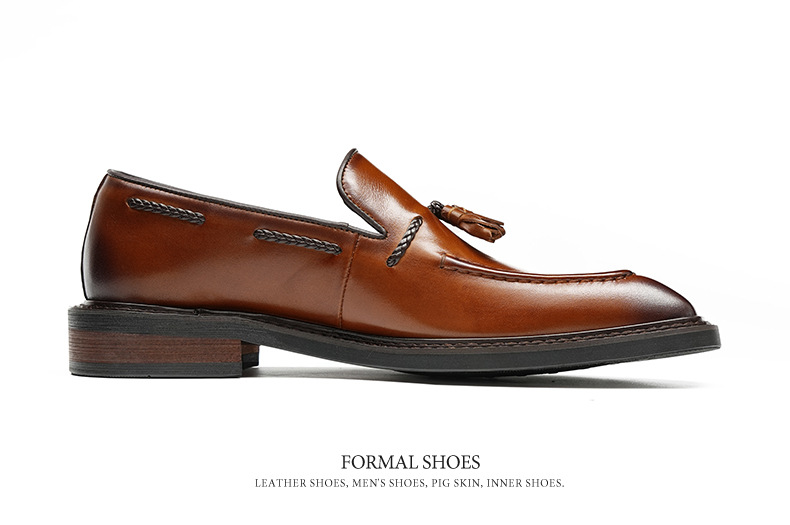 Giày tây nam kiểu dáng hiện đại, phù hợp cho công sở và các dịp đi làm. Sản phẩm được làm từ chất liệu da thật bền đẹp, mang lại cảm giác thoải mái khi mang. Điểm nhấn là phần trang trí tua rua tinh tế phía trước, cùng kiểu dáng xỏ chân tiện lợi. Bạn chỉ cần xỏ chân vào là có thể di chuyển ngay, rất thuận tiện cho những ngày bận rộn. | Tên sản phẩm: Giày Da Nam Chất Liệu Da Bò Phong Cách Hàn Quốc - Giày Dép Nam | Mã sản phẩm: A0183 - Giá: 2.360.000đ | Mã nhà sản xuất: SHRYIC-G05Hình ảnh sản phẩm