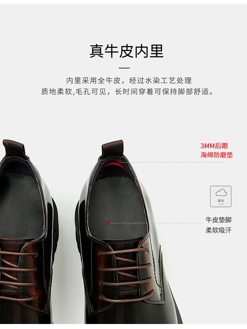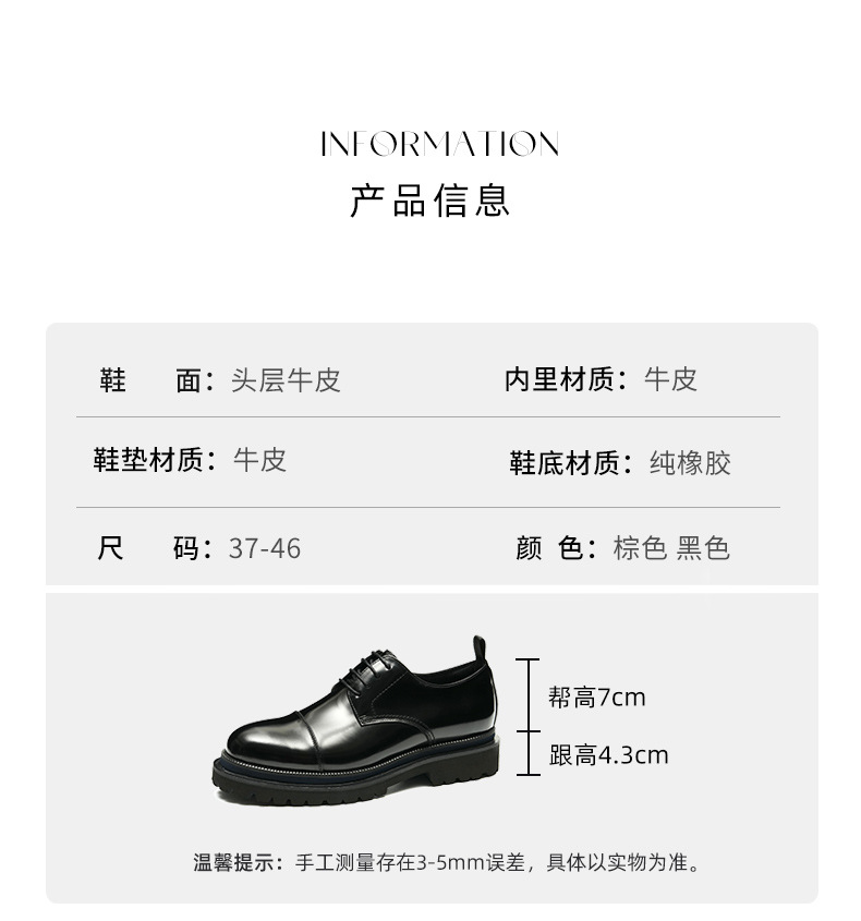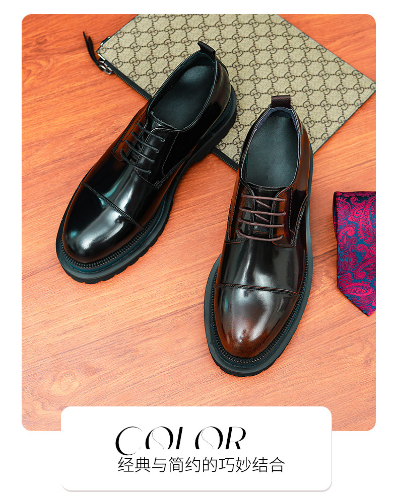 Giày sử dụng chất liệu da thật toàn bộ, mang đến cảm giác êm ái và bền lâu. Phần đế được làm dày hơn một chút, giúp tăng chiều cao một cách tự nhiên. Kiểu dáng mũi nhọn và đường may ba mảnh ở mũi giày tạo nên phong cách lịch sự, phù hợp cho môi trường công sở hoặc những dịp gặp gỡ thông thường. Bạn có thể kết hợp cùng quần âu hoặc quần kaki để có vẻ ngoài chỉn chu. | Tên sản phẩm: Giày Da Nam Chất Liệu Da Bò Mũi Nhọn Tăng Chiều Cao Đế Cao - Giày Dép Nam | Mã sản phẩm: A0191 - Giá: 2.450.000đ | Mã nhà sản xuất: SHRYIC-G05Hình ảnh sản phẩm