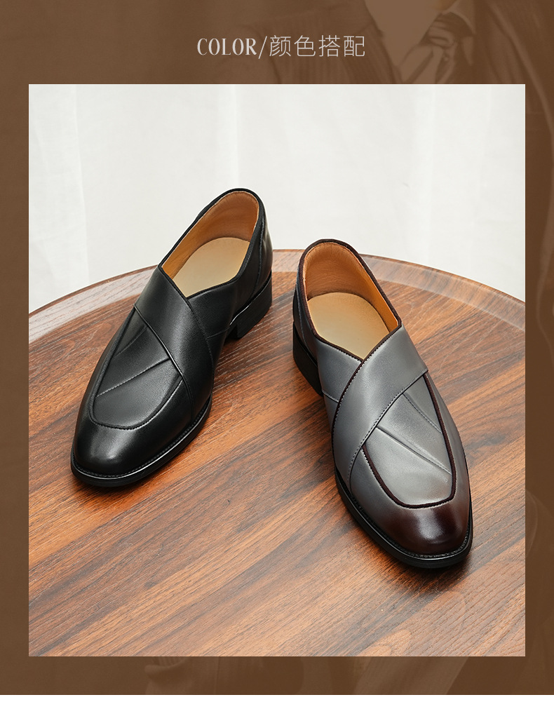 Giày nam thiết kế mũi nhọn, kiểu dáng châu Âu hiện đại. Sản phẩm làm từ chất liệu da bò mềm mại, tạo cảm giác dễ chịu khi mang. Đây là mẫu giày công sở lịch sự, phù hợp cho nhiều dịp. Đặc biệt, giày có kiểu dáng xỏ chân tiện lợi, giúp bạn mang vào hay tháo ra một cách dễ dàng. Bạn chỉ cần xỏ chân vào là có thể sử dụng ngay, rất thiết thực cho cuộc sống bận rộn. | Tên sản phẩm: Giày Da Nam Chất Liệu Da Bò Mũi Nhọn Phong Cách Âu Mỹ - Giày Dép Nam | Mã sản phẩm: A0212 - Giá: 2.160.000đ | Mã nhà sản xuất: SHRYIC-G05Hình ảnh sản phẩm