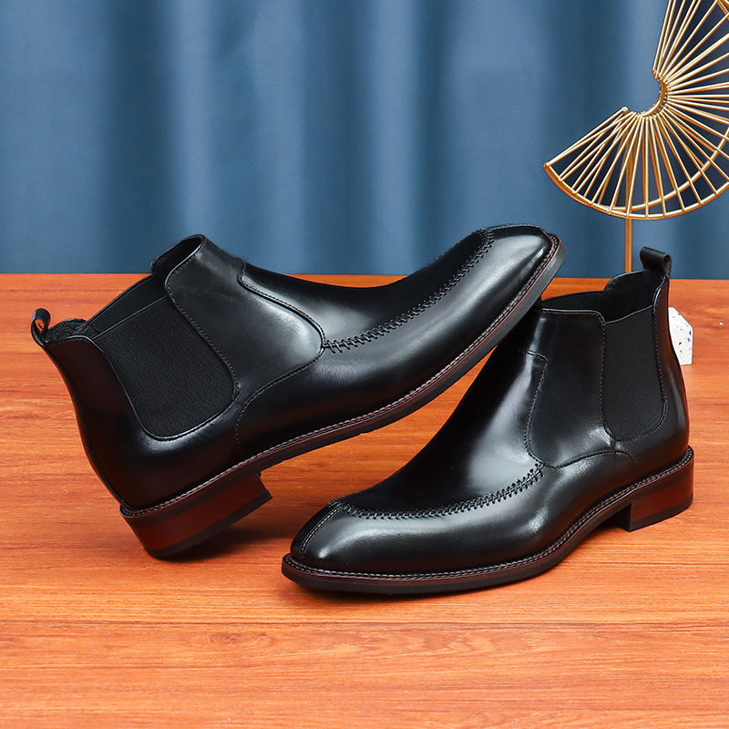 Đôi bốt da này có kiểu dáng ôm cổ chân, phần mũi nhọn tạo nên vẻ lịch sự, phù hợp cho công sở hoặc những dịp cần trang phục chỉn chu. Chất liệu da mềm mang lại cảm giác dễ chịu khi mang cả ngày. Bạn chỉ cần xỏ chân vào và kéo khóa phía bên là đã sẵn sàng, rất tiện lợi. Thiết kế này giúp bạn trông thật gọn gàng và tự tin. | Tên sản phẩm: Giày Da Nam Mũi Nhọn Hàng Mùa Xuân Thu Đông - Giày Dép Nam | Mã sản phẩm: A0216 - Giá: 2.640.000đ | Mã nhà sản xuất: SHRYIC-G06Hình ảnh sản phẩm