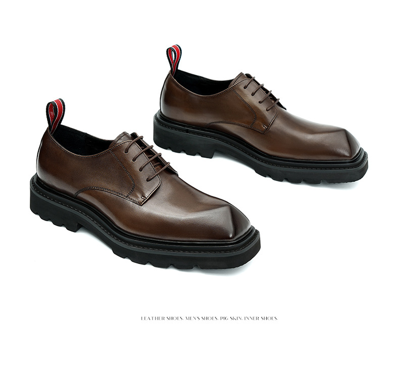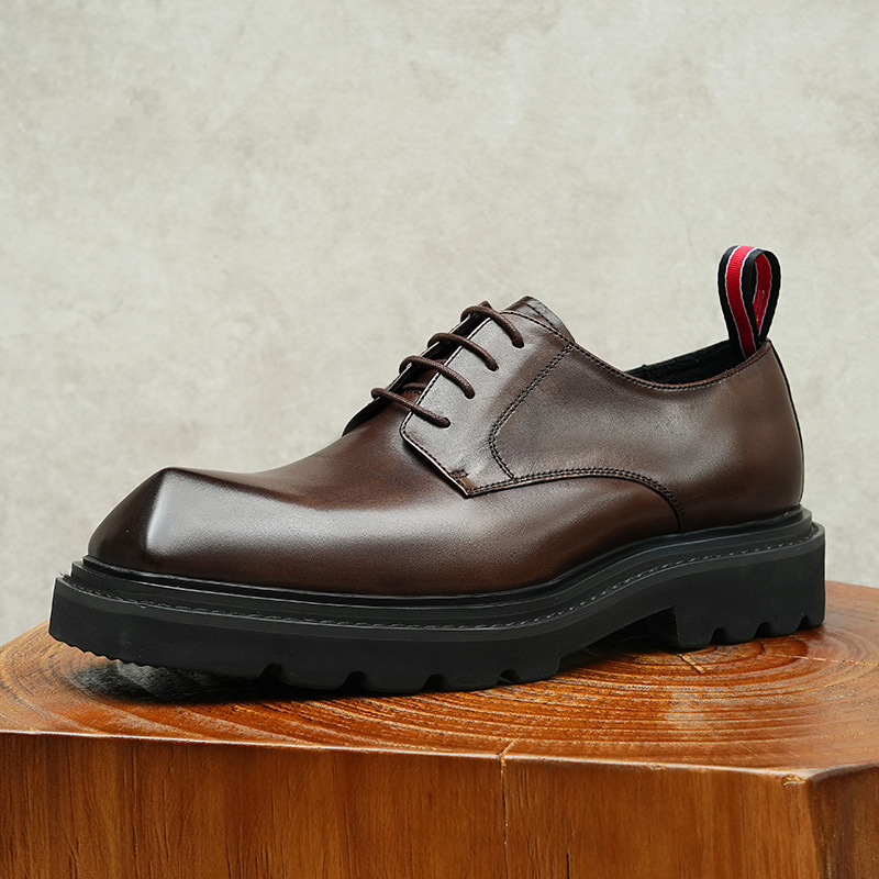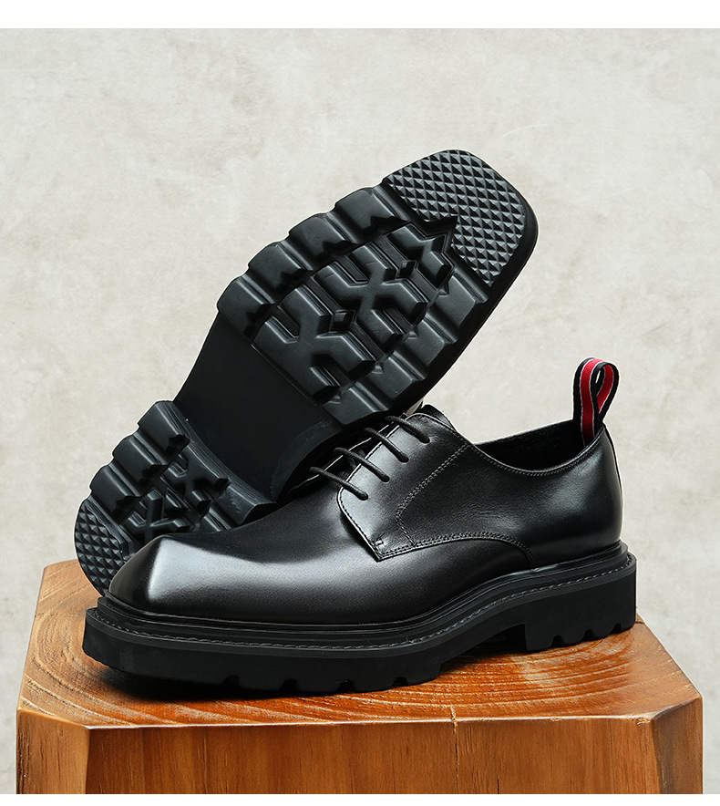 Giày tây dành cho nam, được làm từ chất liệu da thật, mang phong cách cổ điển pha chút hiện đại. Sản phẩm có kiểu dáng giày Derbys lịch sự, phù hợp cho cả công sở và những dịp dạo phố. Đế giày được thiết kế có độ dày vừa phải, giúp tăng chiều cao nhẹ một cách tự nhiên. Bạn có thể dễ dàng phối cùng quần âu hoặc quần jean để tạo nên vẻ ngoài chỉn chu, thoải mái. | Tên sản phẩm: Giày Da Nam Chất Liệu Da Bò Tăng Chiều Cao Đế Cao Phục Cổ Cổ Điển - Giày Dép Nam | Mã sản phẩm: A0227 - Giá: 2.360.000đ | Mã nhà sản xuất: SHRYIC-G05Hình ảnh sản phẩm