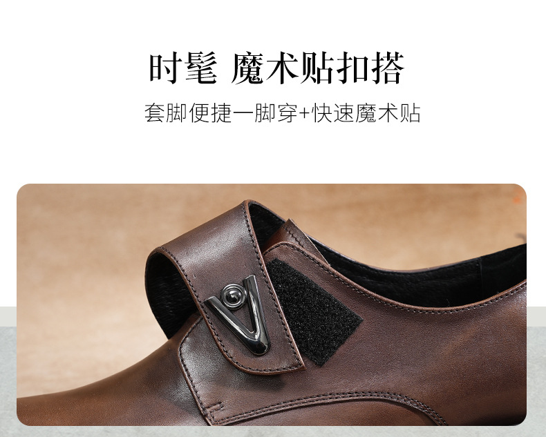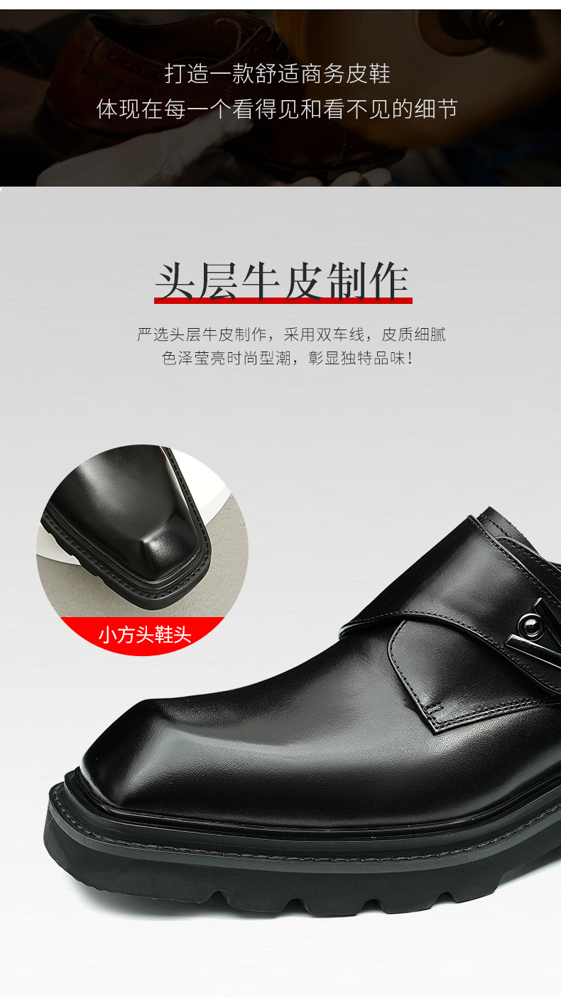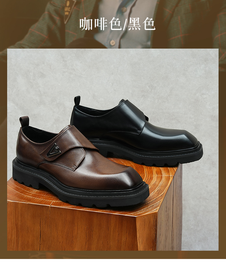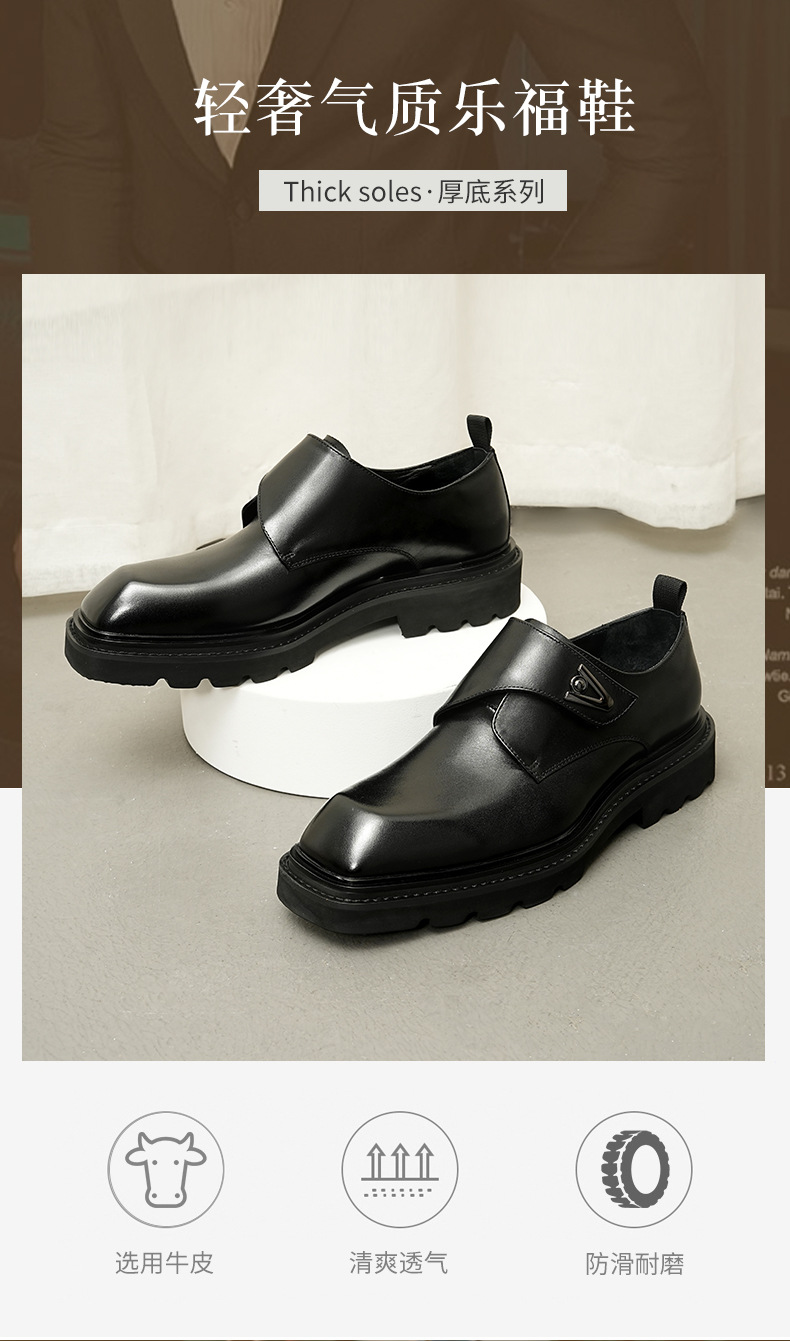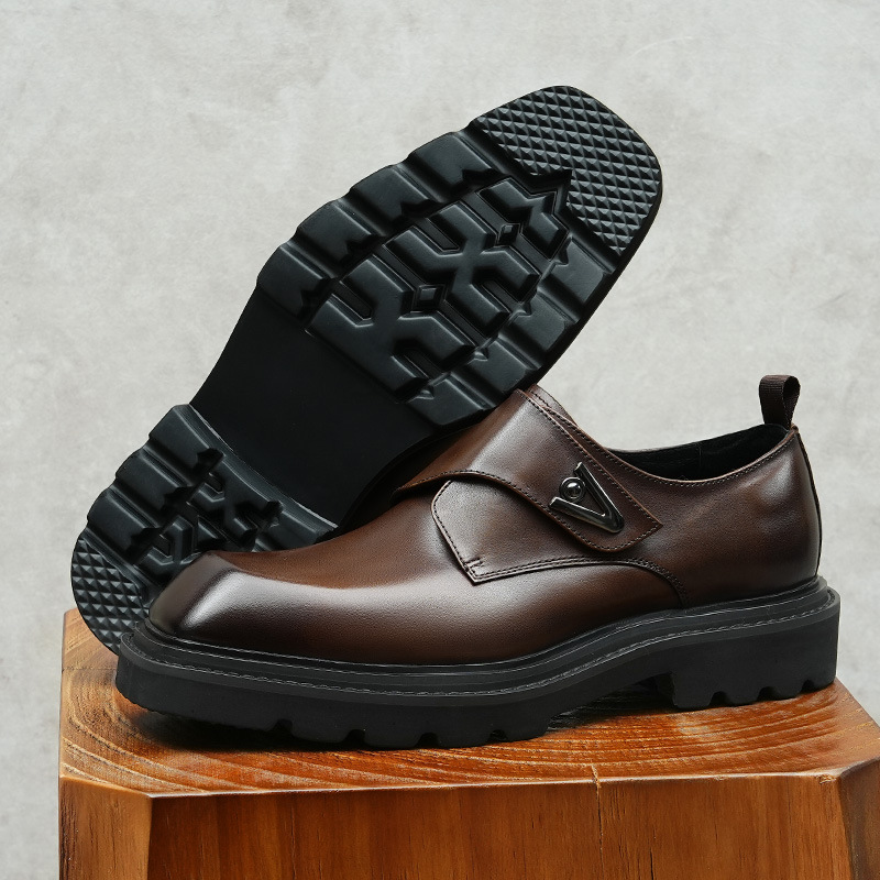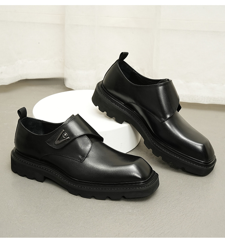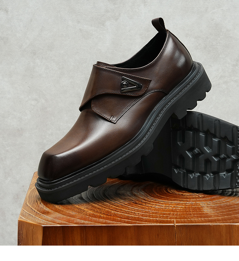 Giày da thật dành cho nam, thiết kế kết hợp phong cách công sở và thoải mái. Sản phẩm sử dụng khóa dán tiện lợi thay cho dây buộc truyền thống, giúp mang vào và tháo ra dễ dàng. Đế giày được làm nhẹ nhưng vẫn có độ dày vừa phải, tạo cảm giác đứng vững chãi. Kiểu dáng mang hơi hướng châu Âu cổ điển, phù hợp cho nhiều dịp. Có thể dùng đi làm hoặc dạo phố, dễ kết hợp với các loại quần áo khác nhau. | Tên sản phẩm: Giày Da Nam Chất Liệu Da Bò Tăng Chiều Cao Đế Cao - Giày Dép Nam | Mã sản phẩm: A0249 - Giá: 2.360.000đ | Mã nhà sản xuất: SHRYIC-G05Hình ảnh sản phẩm