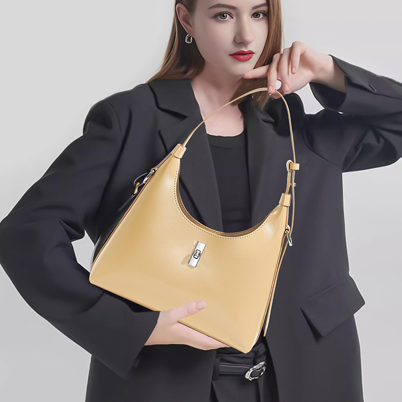 Túi xách kiểu dáng cổ điển lấy cảm hứng từ mẫu bánh mì Pháp, được làm từ chất liệu da bò mềm mại và bền bỉ. Thiết kế dáng đeo dưới cánh tay hoặc xách tay một cách thanh lịch. Túi có qu đeo v linh hoạt, dễ dàng chuyển đổi thành phong cách đeo chéo tiện lợi. Dung tích rộng rãi phù hợp để đựng các vật dụng cá nhân hằng ngày. Có thể kết hợp với nhiều trang phục khác nhau, từ đi làm đến dạo phố. | Tên sản phẩm: Túi Xách Nữ Chất Liệu Da Bò Phục Cổ Cổ Điển - Túi Ví Nữ | Mã sản phẩm: A0328 - Giá: 1.490.000đ | Mã nhà sản xuất: GUDLE-G04Hình ảnh sản phẩm